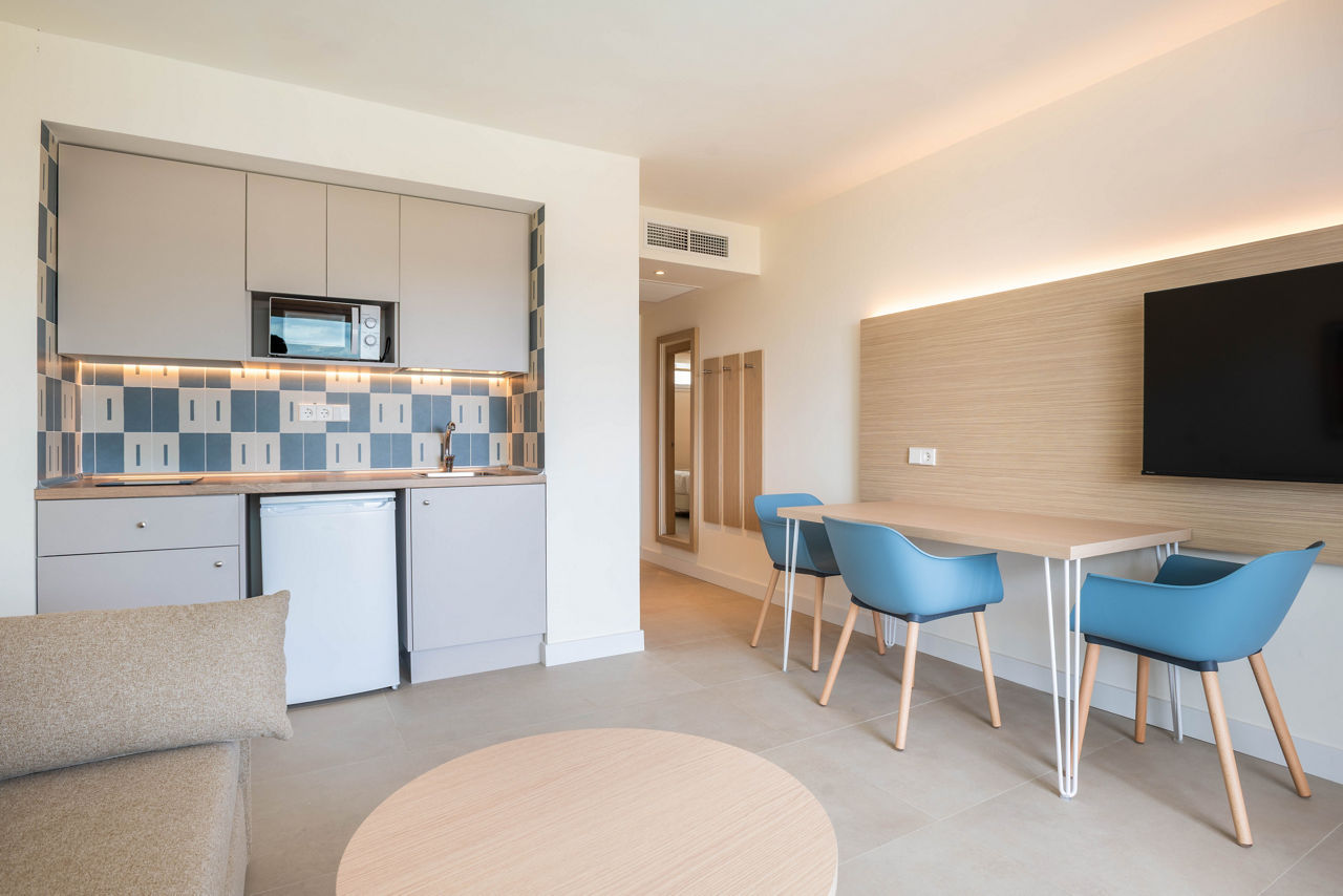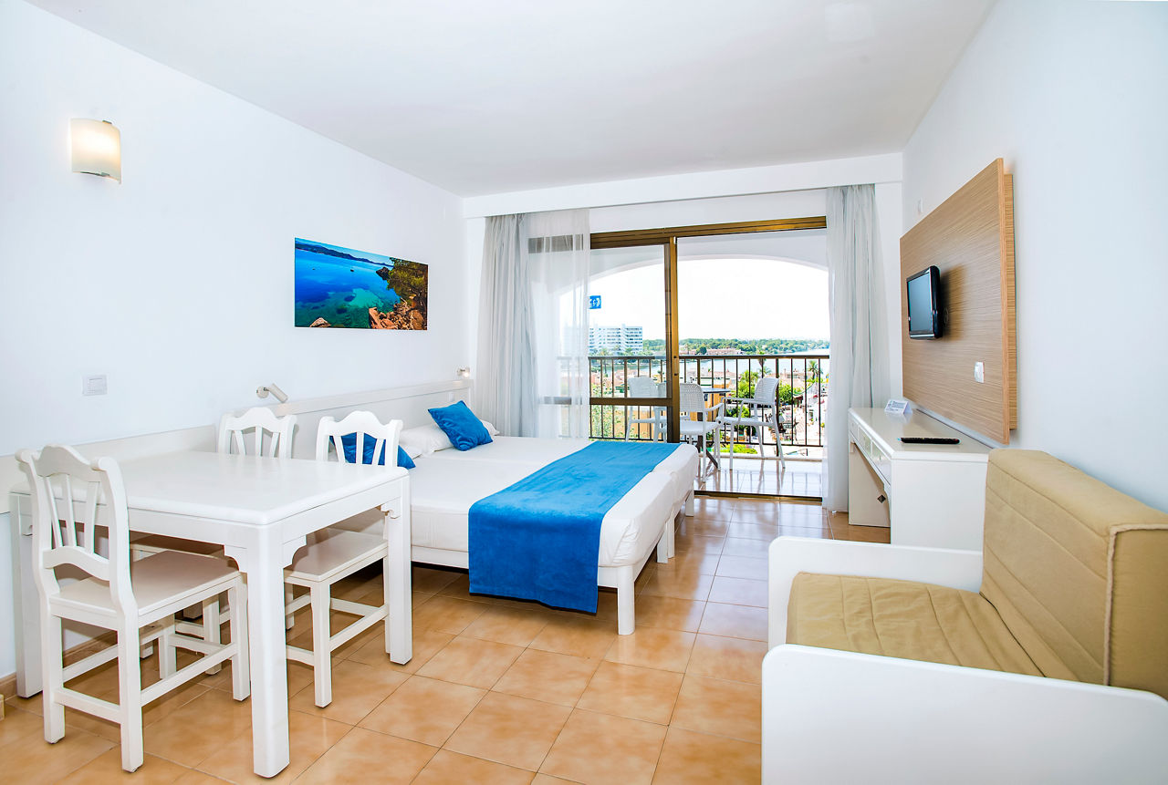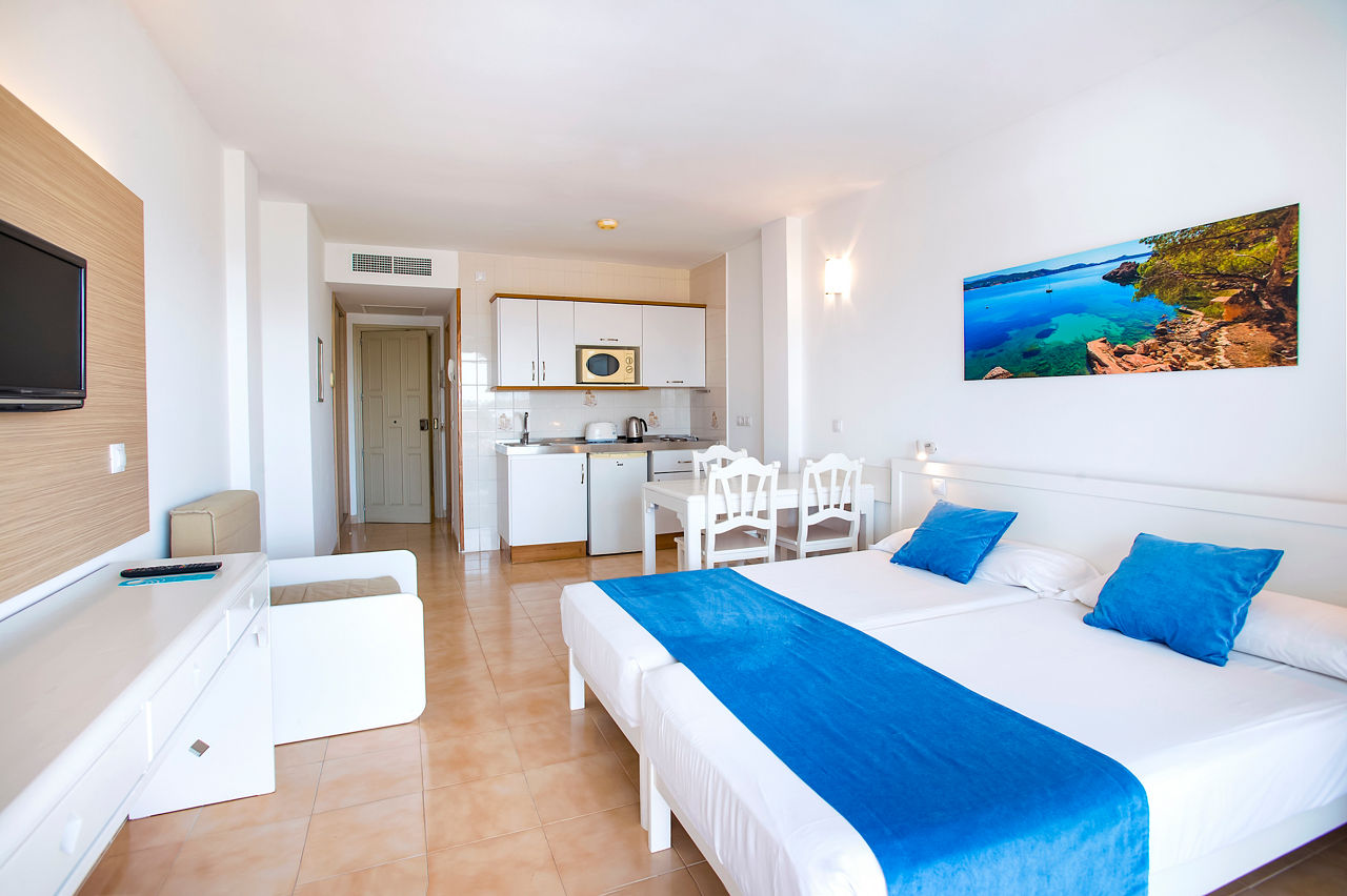 Studios sleep up to 2 adults and 1 child and have bathroom containing a bath, air conditioning, hairdryer, flat screen television, coffee making facilities, fridge, toaster, microwave, double cooking rings and balcony or terrace. Room upgrade options are also available.