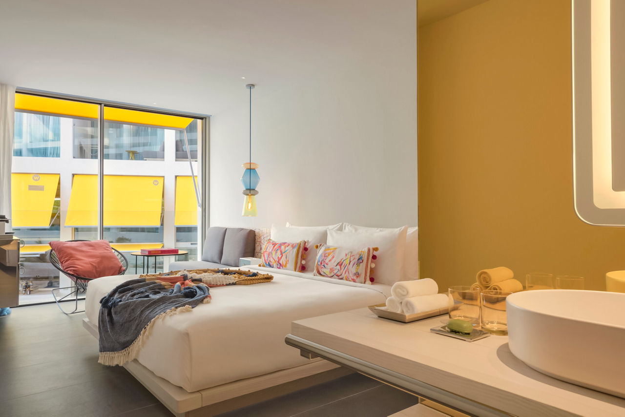 Jewel-colour palettes, on-site spa and yoga classes, Glow Rooftop bar? Someone?s arrived at W Ibiza. When rooms boast names like ?Wow?, ?Fabulous? and ?Cool Corner?, it can only mean very good things indeed. Did we mention the beach within reach, just a stone throw away? Be right back ? must pack immediately.