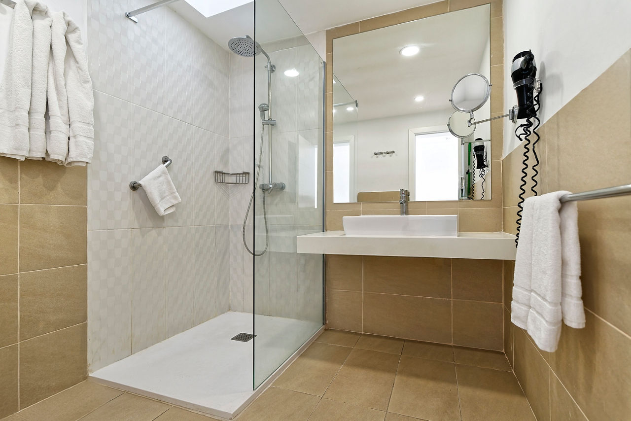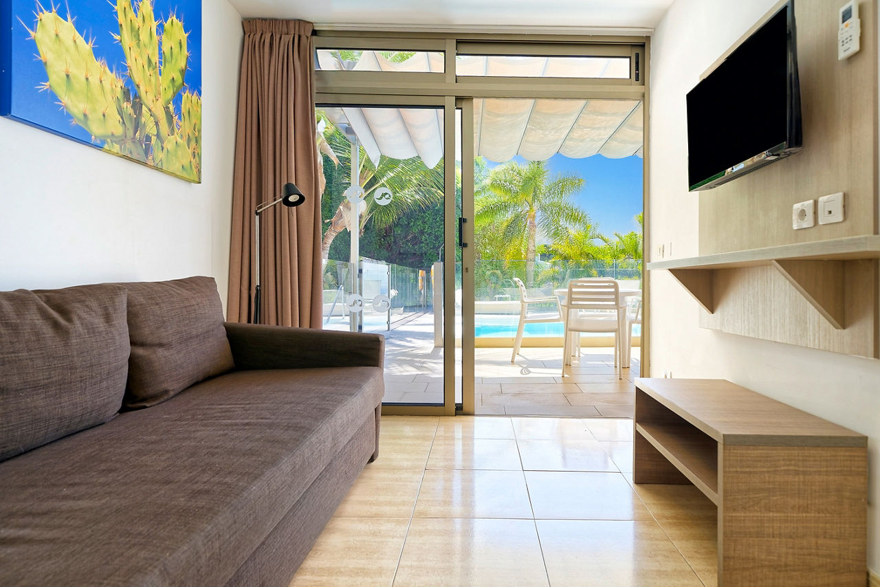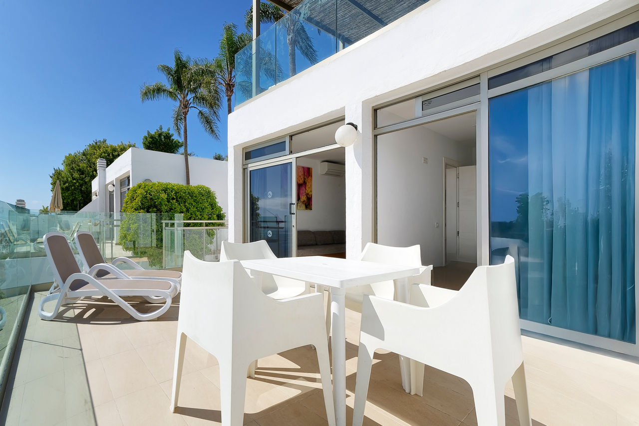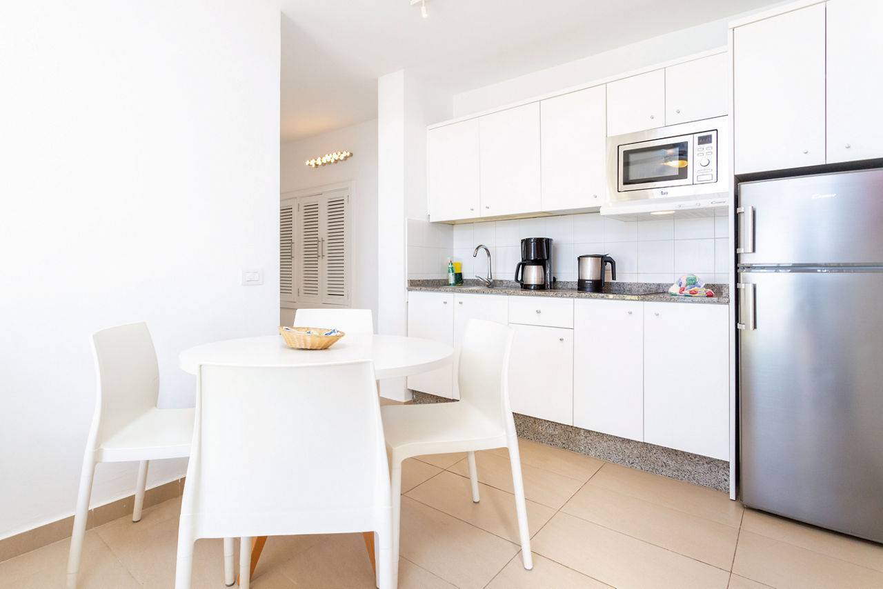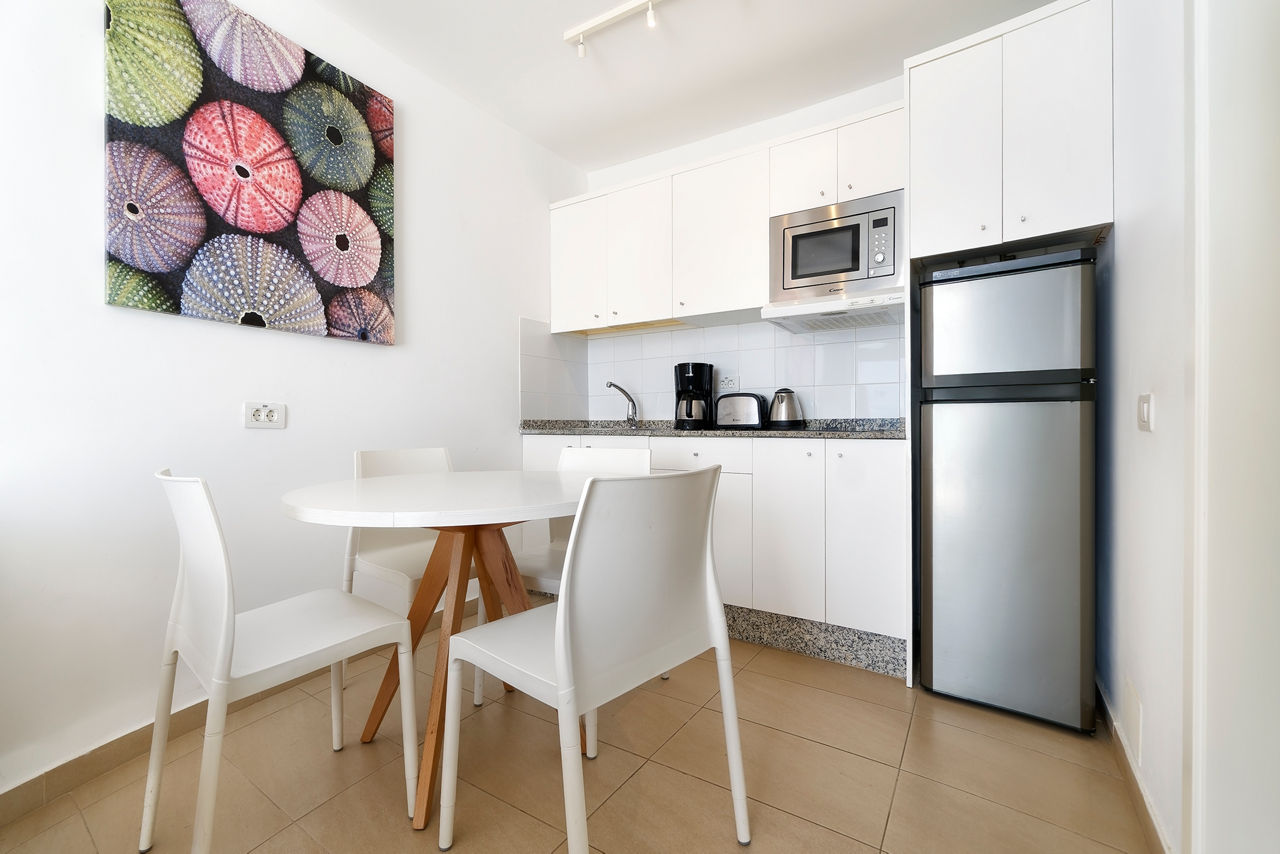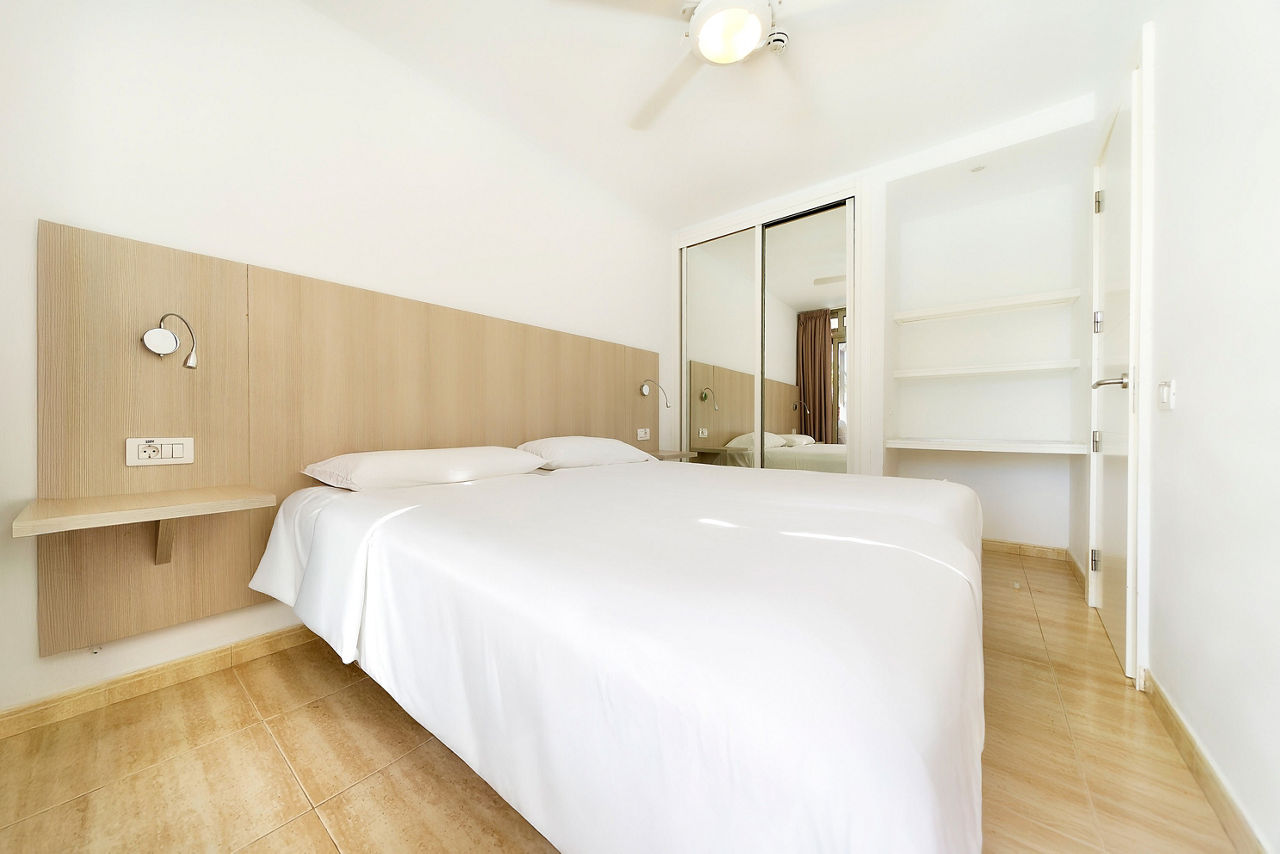 One Bedroom apartments sleep up to 4 adults and have separate bedroom, full bathroom, ceiling fan, lounge area with with sofa beds, satellite TV*, ceiling fan, kitchenette with dining area, 2 cooking rings, microwave, fridge, coffee maker and toaster, and terrace with sea or side sea views. Studios sleeping up to 2 adults and 1 child are also available. From 01 May 2015, Club rooms sleeping up to 2 adults and 2 children and inclusive of modern furnishings, free satellite TV, safe, kettle, additional maid service, and sea views - some of the best from the hotel, are also available.