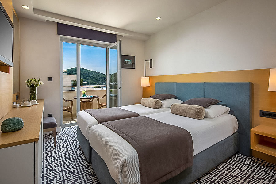 The beautifully appointed hotel is ideally nestled on the shores of the Lapad Peninsula, steps away from Lapad Bay promenade and surrounded by the fresh aroma of fragrant pine trees and the gentle lapping sounds of the inviting Adriatic Sea. Royal Neptun Hotel boasts a modern and sophisticated concept where rooms present stylish interiors and quality furnishings, along with glorious sea views. The hotel forms part of the Royal Hotels and Resort complex along with 4 other charming hotels that share a number of facilities including swimming pools, restaurants and bars. Have a cocktail at the On the Rocks bar and enjoy the atmosphere and sounds of the sea or relax in the indoor pool for total tranquility.