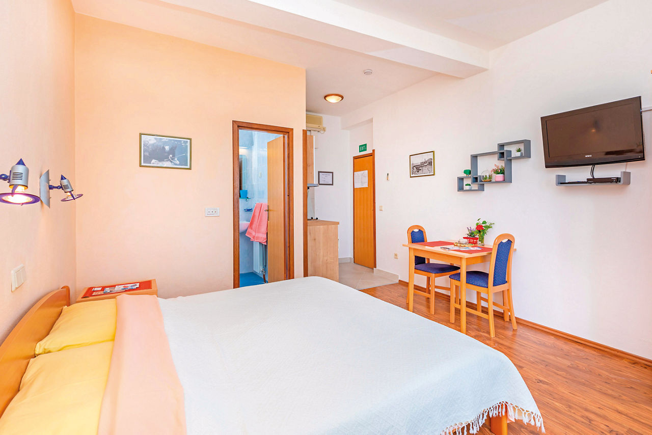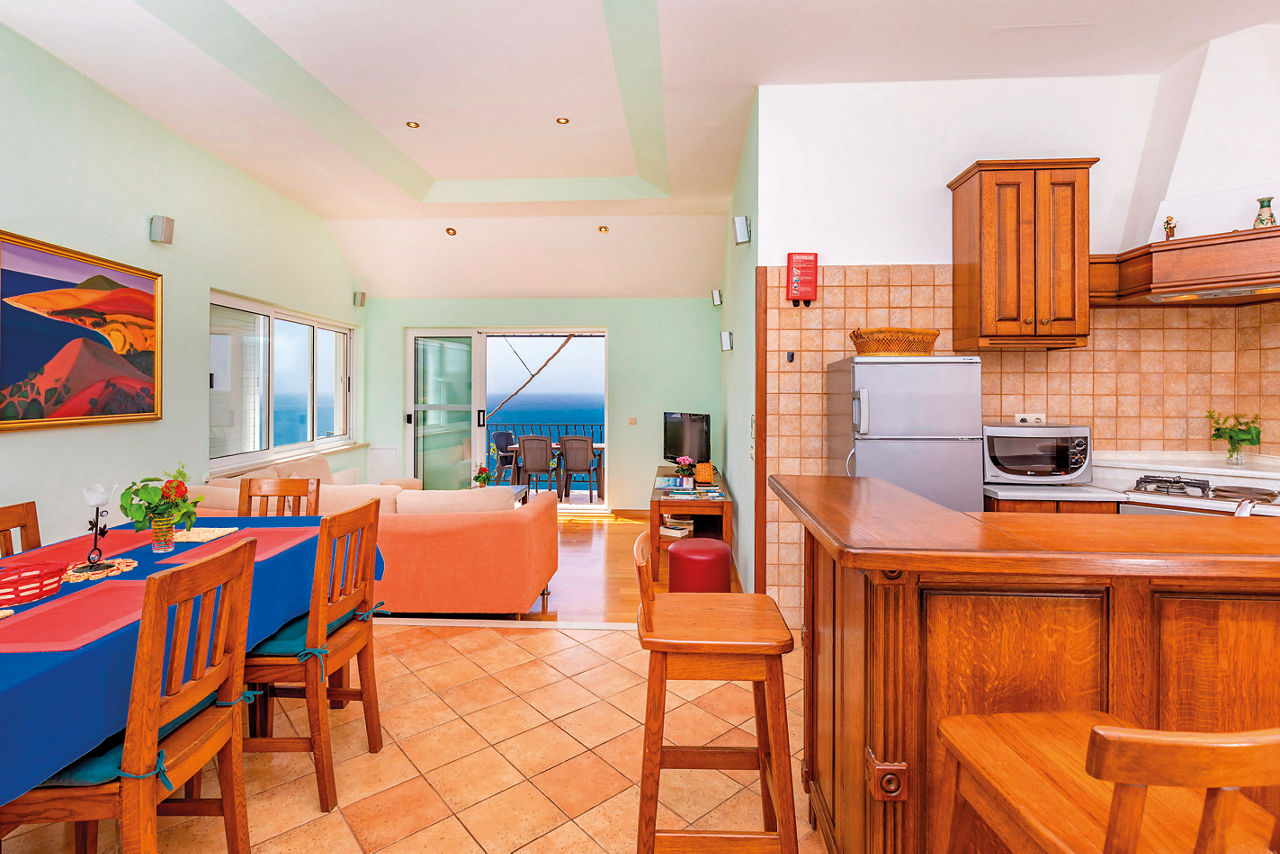 Studios sleep up to 3 adults and have bathroom containing a shower, air conditioning, hairdryer, television, double cooking rings, fridge, microwave, tea and coffee making facilities and balcony. Studios with Sea View, Superior studios and Two Bedroom apartments, sleeping up to 4 adults, are also available.