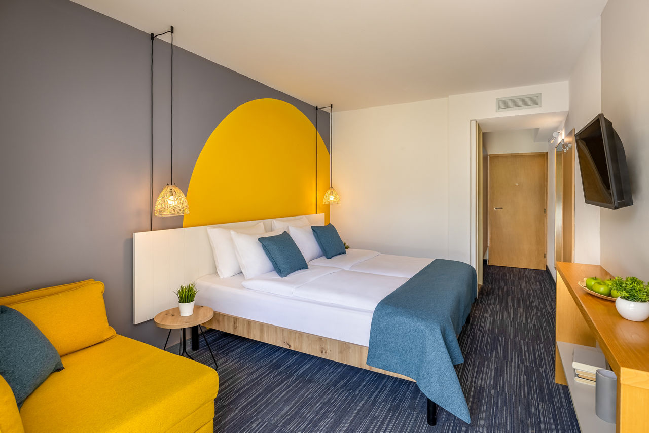 Standard Park View rooms sleep up to 3 adults and have a bathroom with shower, hairdryer, air conditioning, flat screen satellite TV and free Wi-Fi. Park View rooms for sole use are also available.