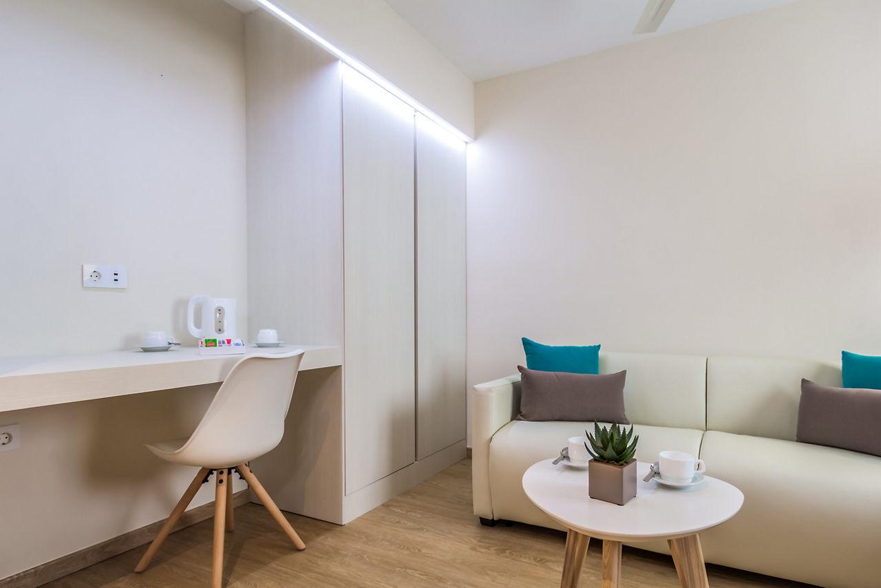 Studios sleep up to 2 adults and have bathroom with shower, hairdryer, flat screen television and balcony or terrace. Room upgrade options and rooms for Sole Use are also available.