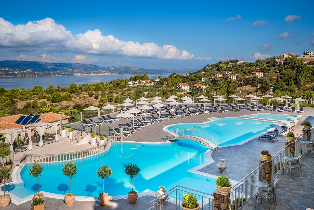 With a hillside location overlooking the stunning Ionian Sea, the Dionysos Village Resort is only a short distance from the lively resort of Lassi. The choice of rooms are bright and comfortable and come with all the amenities needed for an enjoyable stay. Facilities include a large outdoor pool with pool bar for those who enjoy soaking up the sun, as well as a massage room and beauty facilities for those pamper days. Enjoy a walk through the hotel's organic garden, filled with homegrown fruit and vegetables, along with its own vineyard, both of which are used in the hotel's restaurant.