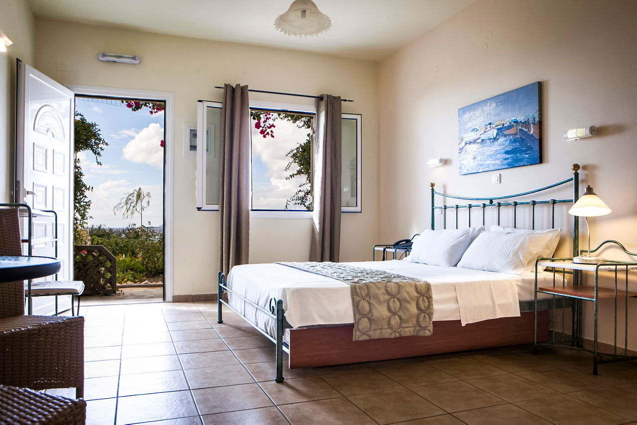 Double Rooms sleep up to 3 adults and have a bathroom containing a shower, air conditioning, hairdryer, television and a patio/terrace area. For bigger families the Superior One Bedroom Apartment sleeps up to 2 adults and 2 children and has a private balcony.