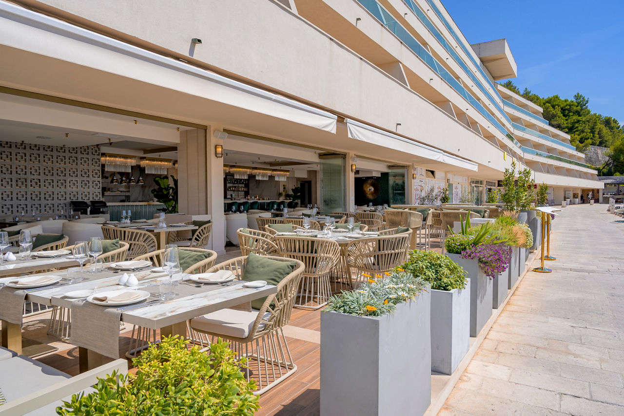 All of life's little luxuries are on show at this chic coastal hideaway. Count the ways in which to relax as you discover the Recupera Spa where soothing Roman baths and the signature massage treatments are waiting to indulge your senses. Sunbeams and sea views spill through the panoramic windows, creating radiant spaces and a tranquil mood throughout. Outside, alternate your days dreamily drifting between the infinity pool and the pebble beach. You will soon see there is no better way to let go than to simply soak up the turquoise-tinted scene before you. The life of luxury continues as you sip cocktails at the La Vue bar and gaze past the yacht-filled marina to the idyllic islands floating on the horizon.