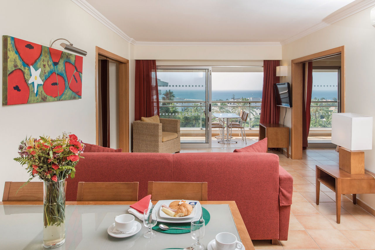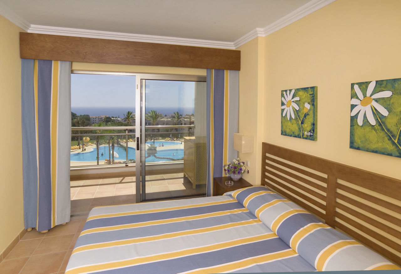 One Bedroom apartments with Garden View sleep up to 4 adults and have bathroom containing bath with shower attachment, air conditioning, hairdryer, television, double cooking rings, microwave, tea and coffee making facilities, toaster and balcony. One Bedroom apartments with Sea View, Superior One Bedroom apartments with Sea View, Twin rooms and Interconnecting Twin rooms are also available.