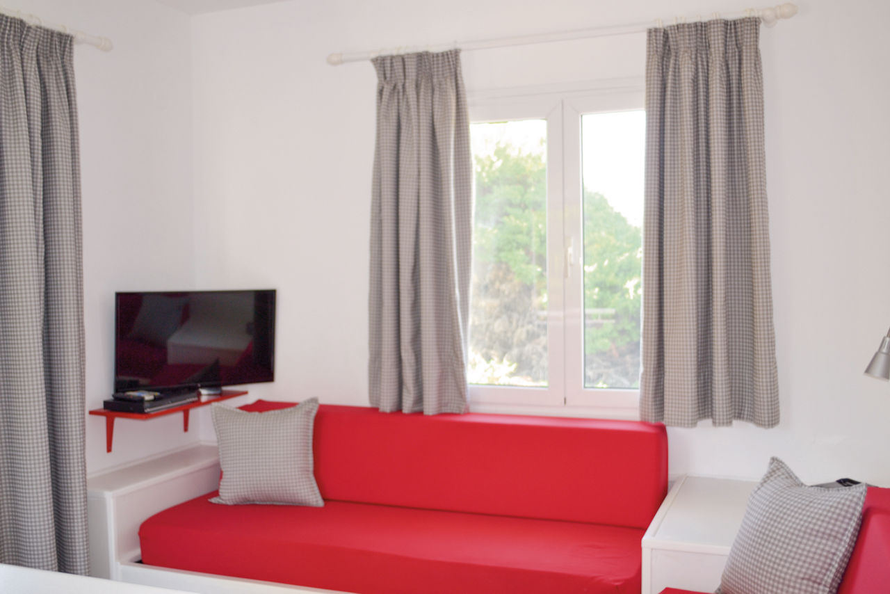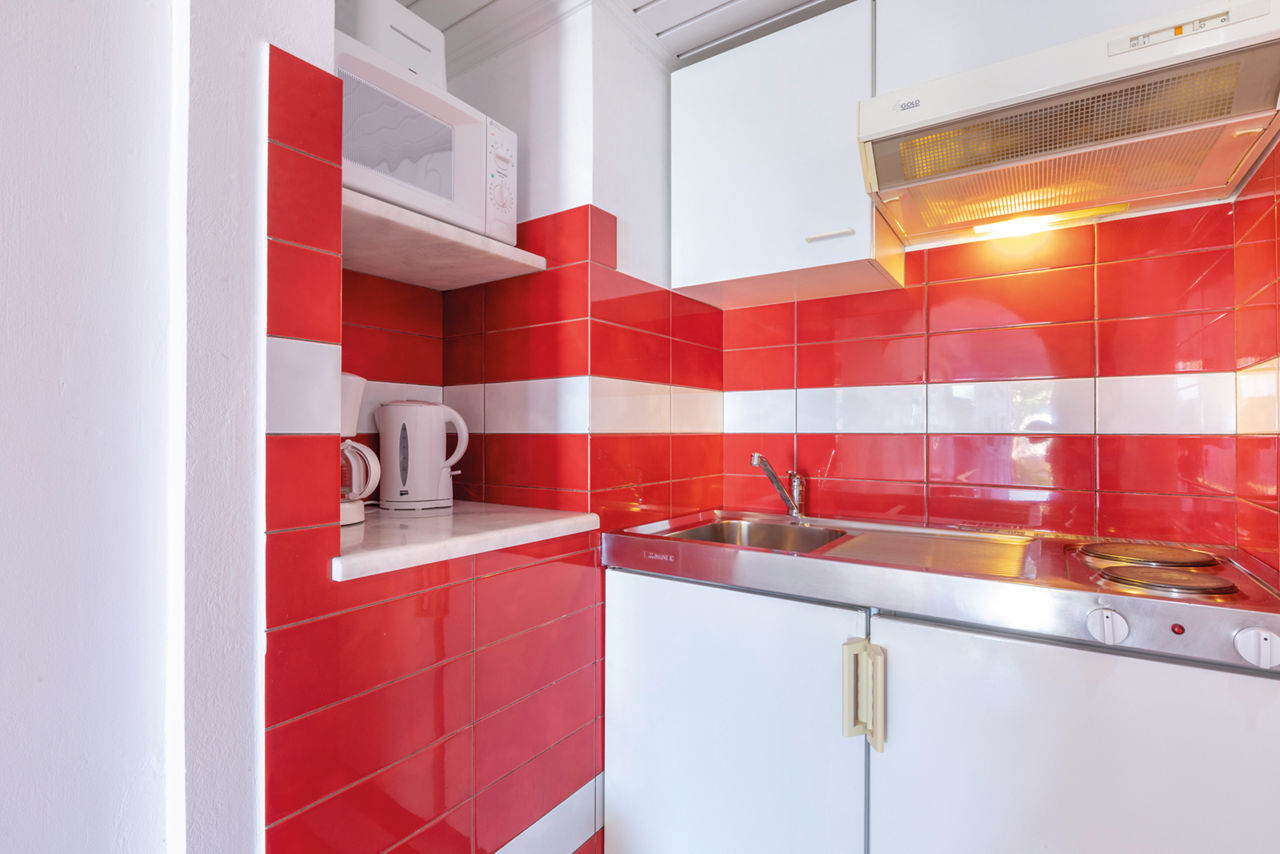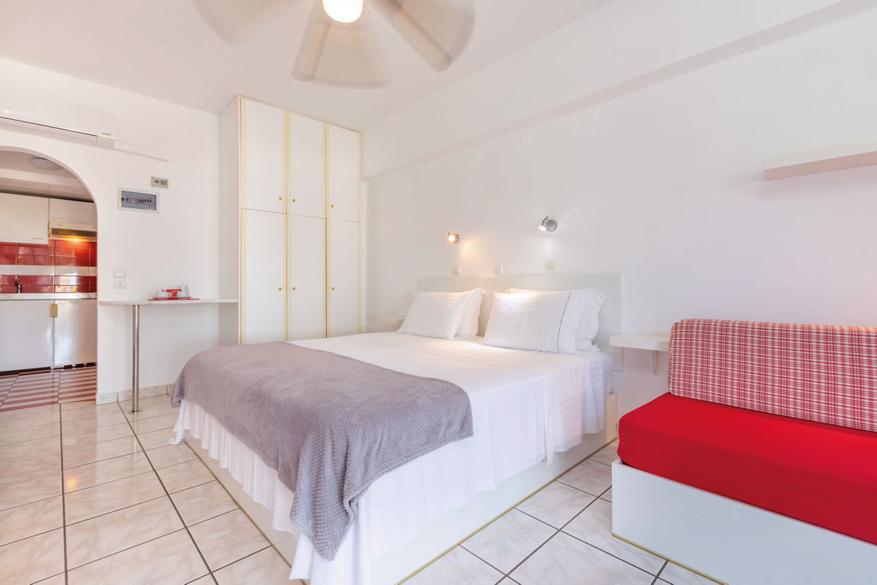 Studios have twin beds and sleep up to 3 adults and have a bathroom with shower, air conditioning*, kitchenette with fridge, microwave and kettle and a balcony or terrace. One Bedroom apartments sleeping up to 3 adults and 1 child, Bed & Breakfast and Half Board are also available.