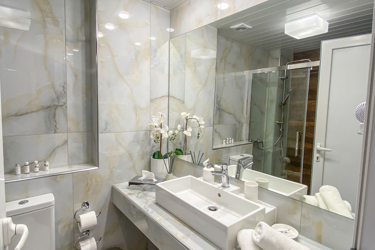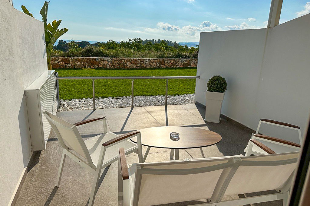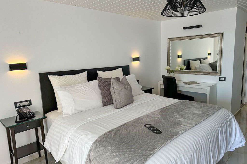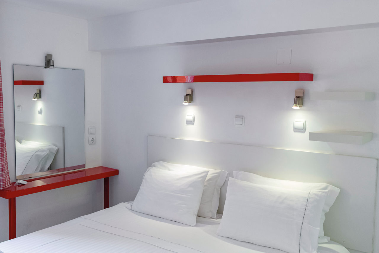 Studios have twin beds and sleep up to 3 adults and have a bathroom with shower, air conditioning*, kitchenette with fridge, microwave and kettle and a balcony or terrace. One Bedroom apartments sleeping up to 3 adults and 1 child, Bed & Breakfast and Half Board are also available.
