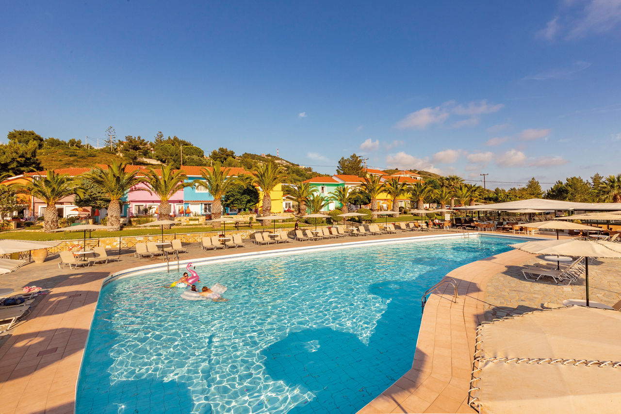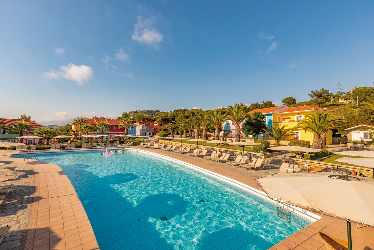 San Lorenzo Village is situated in an enviable location with stunning views overlooking the beautiful sandy Makris Yialos beach. With a number of different board basis?s, you can choose an option to suit your needs. This popular, friendly studio and apartment complex has pastel coloured accommodation blocks set in pretty gardens, making it the perfect choice for both couples and families seeking a great value relaxing holiday on the beautiful island of Kefalonia.
