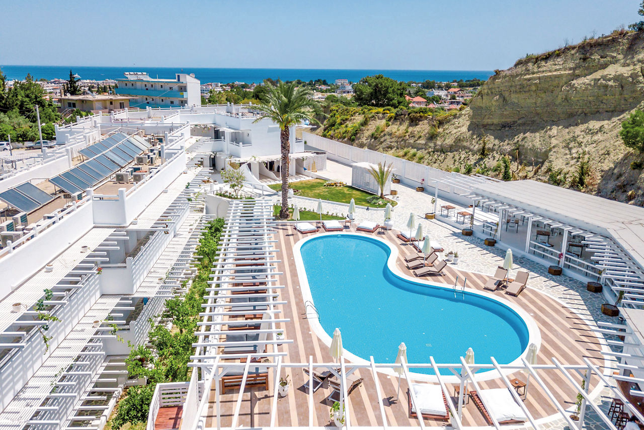 The Hotel Aloe is set in a rural location on the outskirts of Faliraki. This small and friendly property will feature fresh, redesigned rooms, a lovely pool area complemented by a snack bar and a peaceful pool area. Ideal for couples seeking relaxation, the resort centre and the golden sandy beach is a steady walk away for a livelier change of pace.