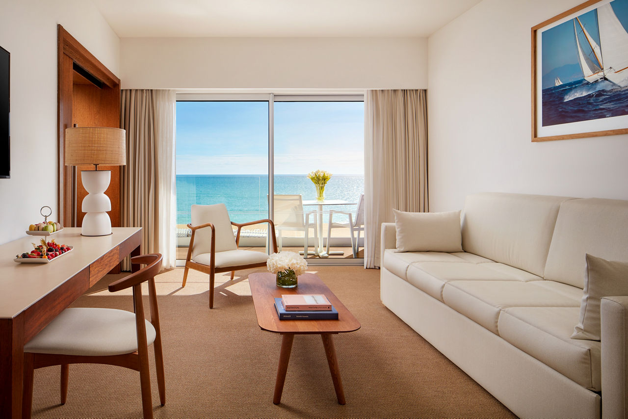Deluxe rooms sleep up to 3 adults and have a bathroom containing a bath with shower attachment, air conditioning, hairdryer, bathrobe and slippers, flat screen television and balcony or terrace. Family rooms, sleeping up to 4, and Deluxe Junior suites, with separate living area, are also available. An extra bed will be provided in Deluxe and Deluxe Premium rooms when 3 guests are occupying the room.