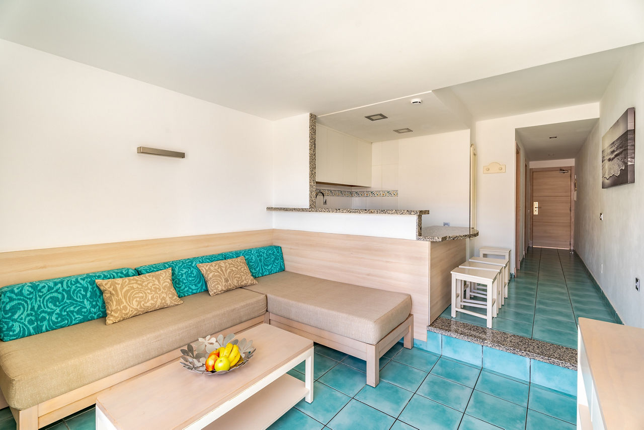 One Bedroom apartments sleep up to 4 adults and have twin beds, bathroom containing a shower, hairdryer, flat screen television, living room with sofa beds, kitchenette with double cooking rings, microwave, toaster, kettle, fridge and balcony or terrace.