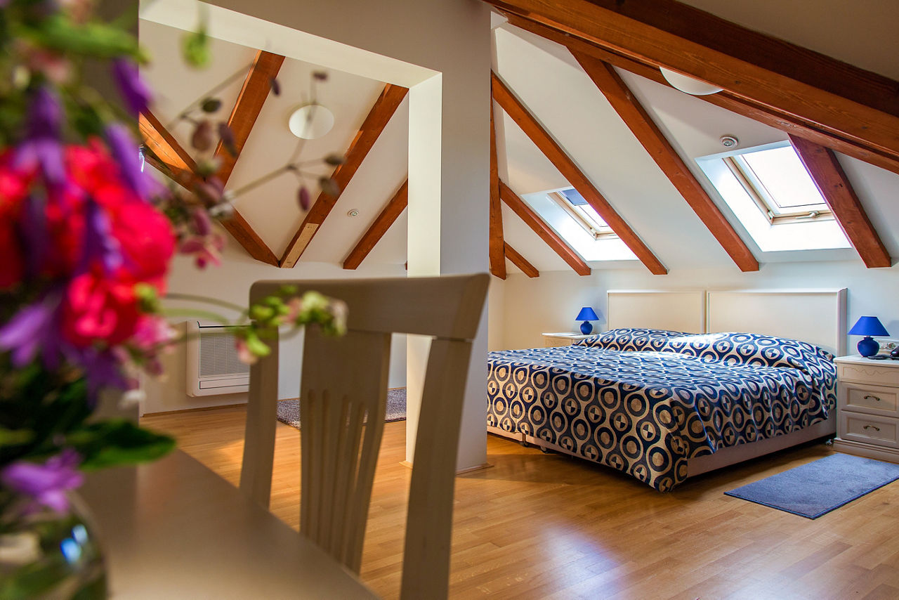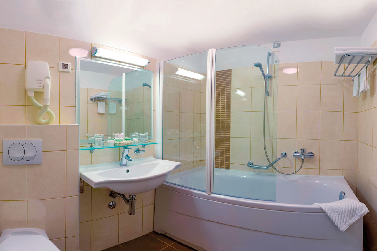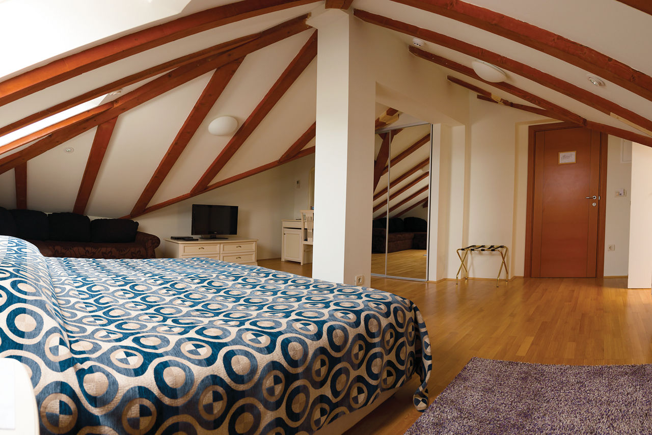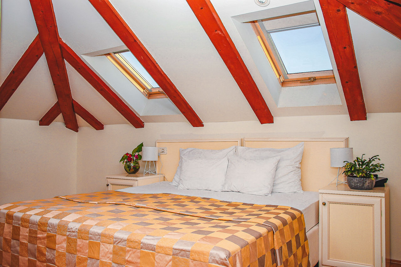 Double Economy Attic rooms sleep up to 3 adults and have bathroom with bath or shower, air conditioning, hairdryer, bathrobe and slippers and fridge. Room upgrade options are also available