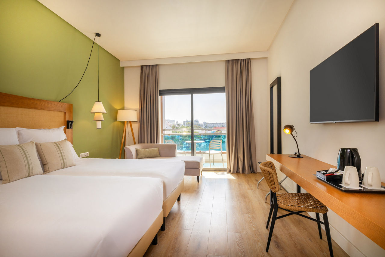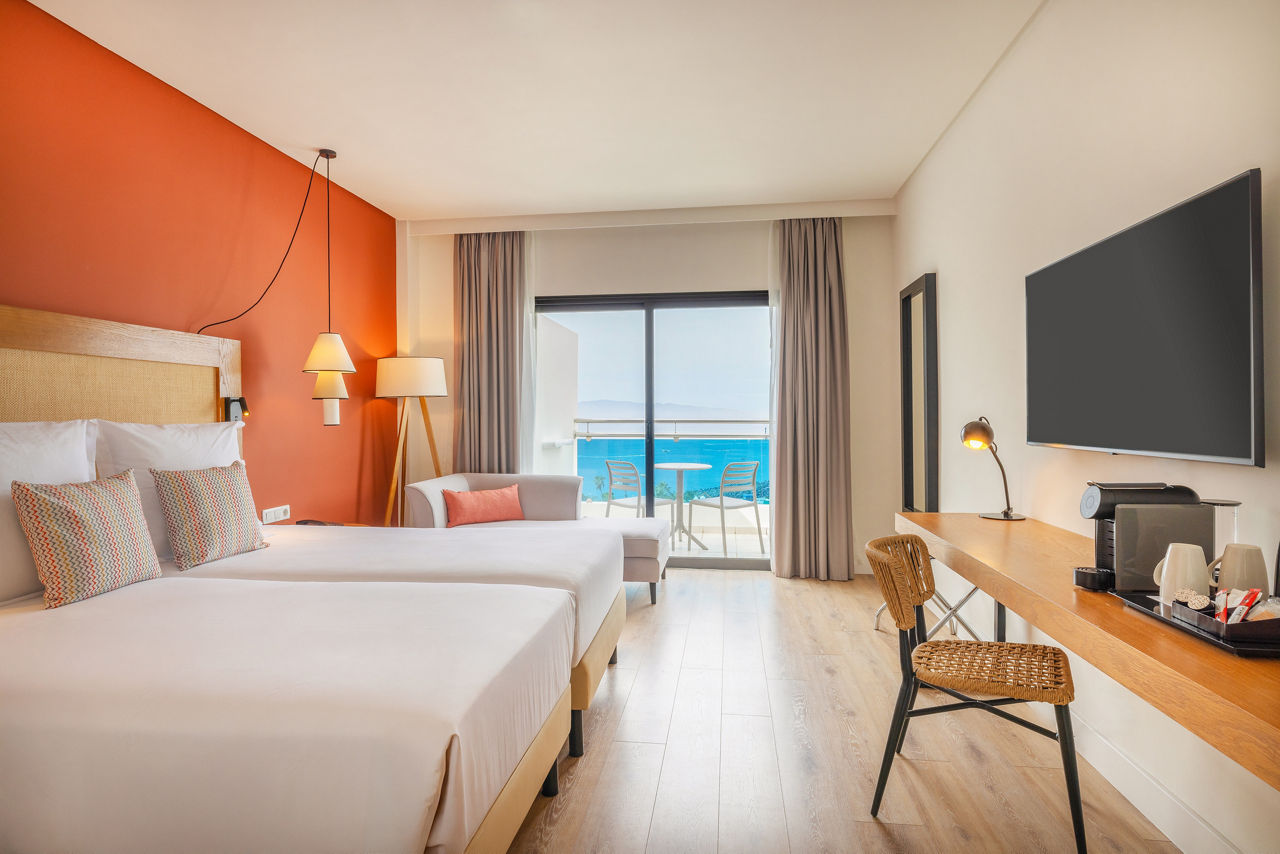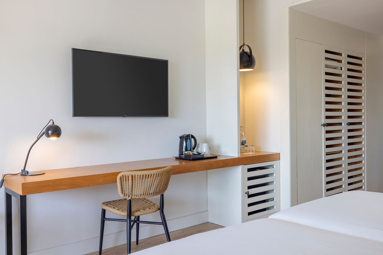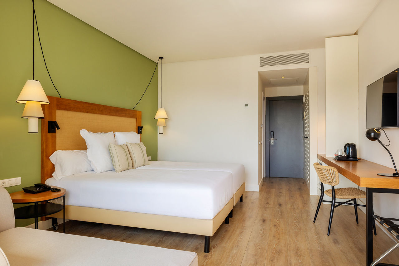 Standard Twin room sleep 2 adults and have bathroom containing a bath with shower attachment, air conditioning, hairdryer flat screen television, Wi-Fi and balcony or terrace. Sole Use rooms and room upgrade options are also available.