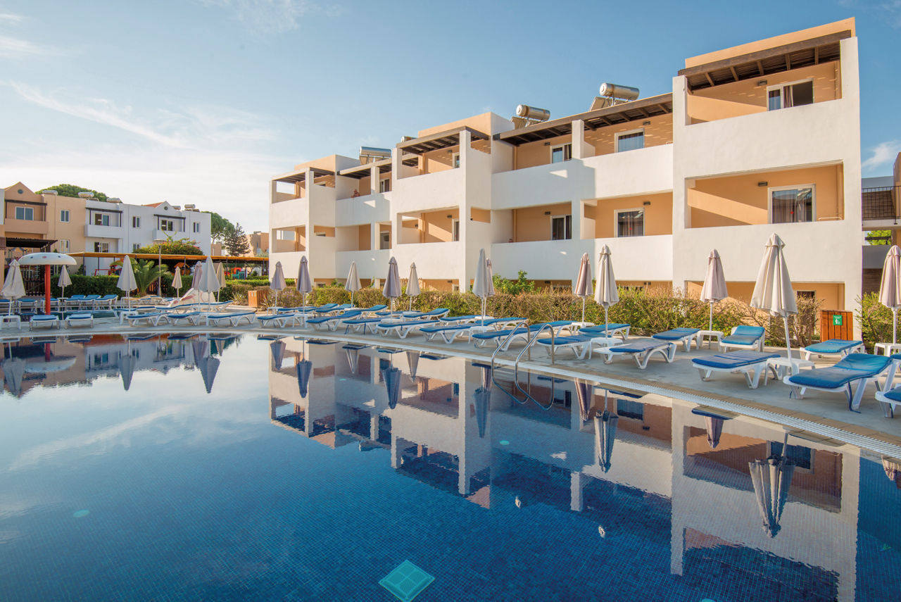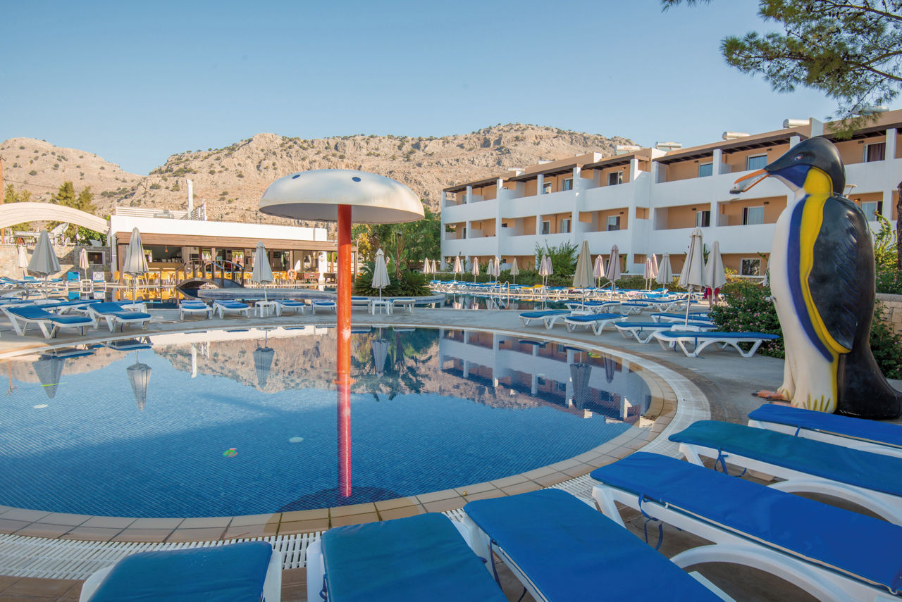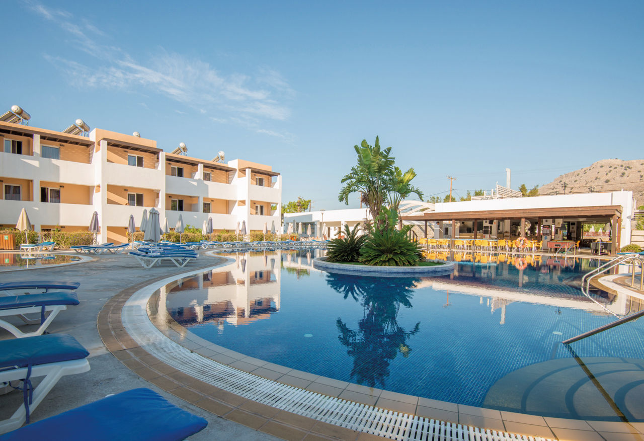 Set in a quiet location with views down to the golden sandy bay of Pefkos, Matina Aparthotel Pefkos has all the ingredients to make a great holiday! Think three pools, fantastic cocktails, and gorgeous Grecian Sun. The ? la carte restaurant serves delicious homemade Greek cuisine, while the friendly pool bar is on hand for breakfast and refreshing drinks. Looking for somewhere to keep the kids entertained? With a children?s pool and playground they will be having no end of fun! Newly renovated Double Rooms and Suites are also available, some featuring private pools for a truly relaxing and stylish stay.