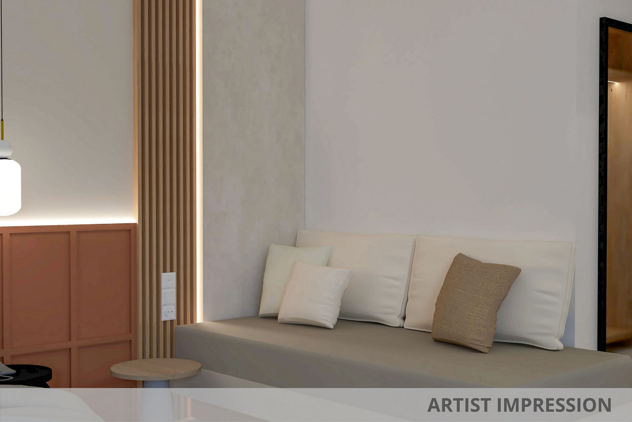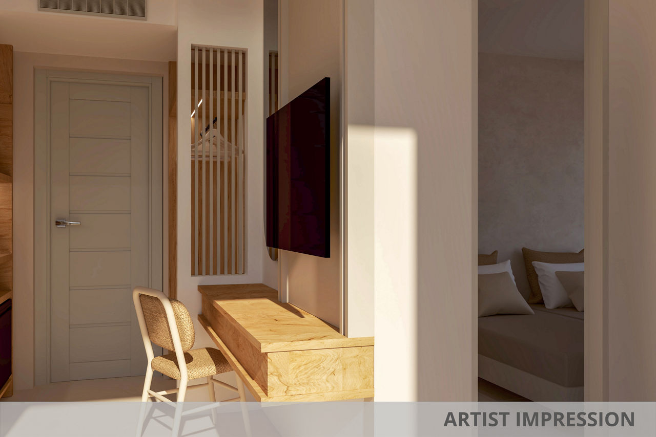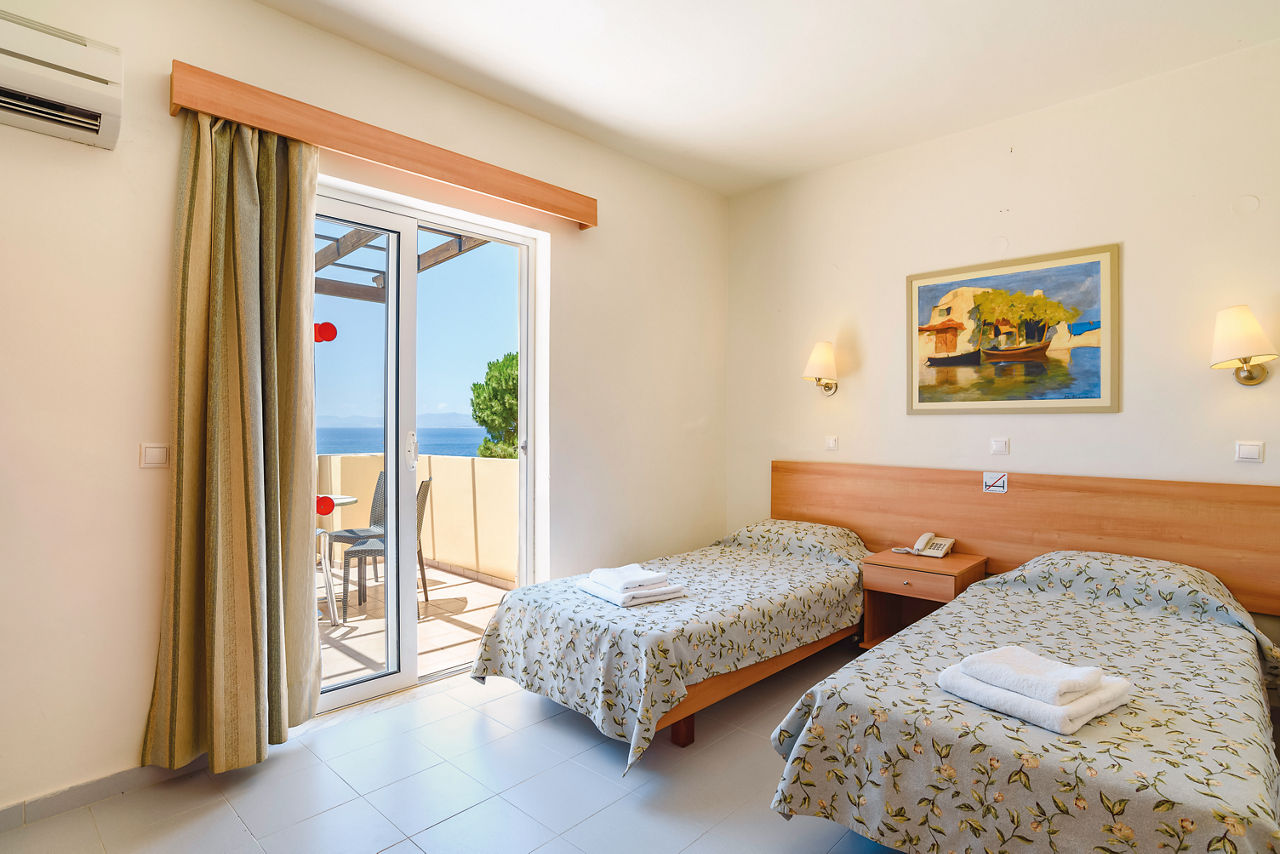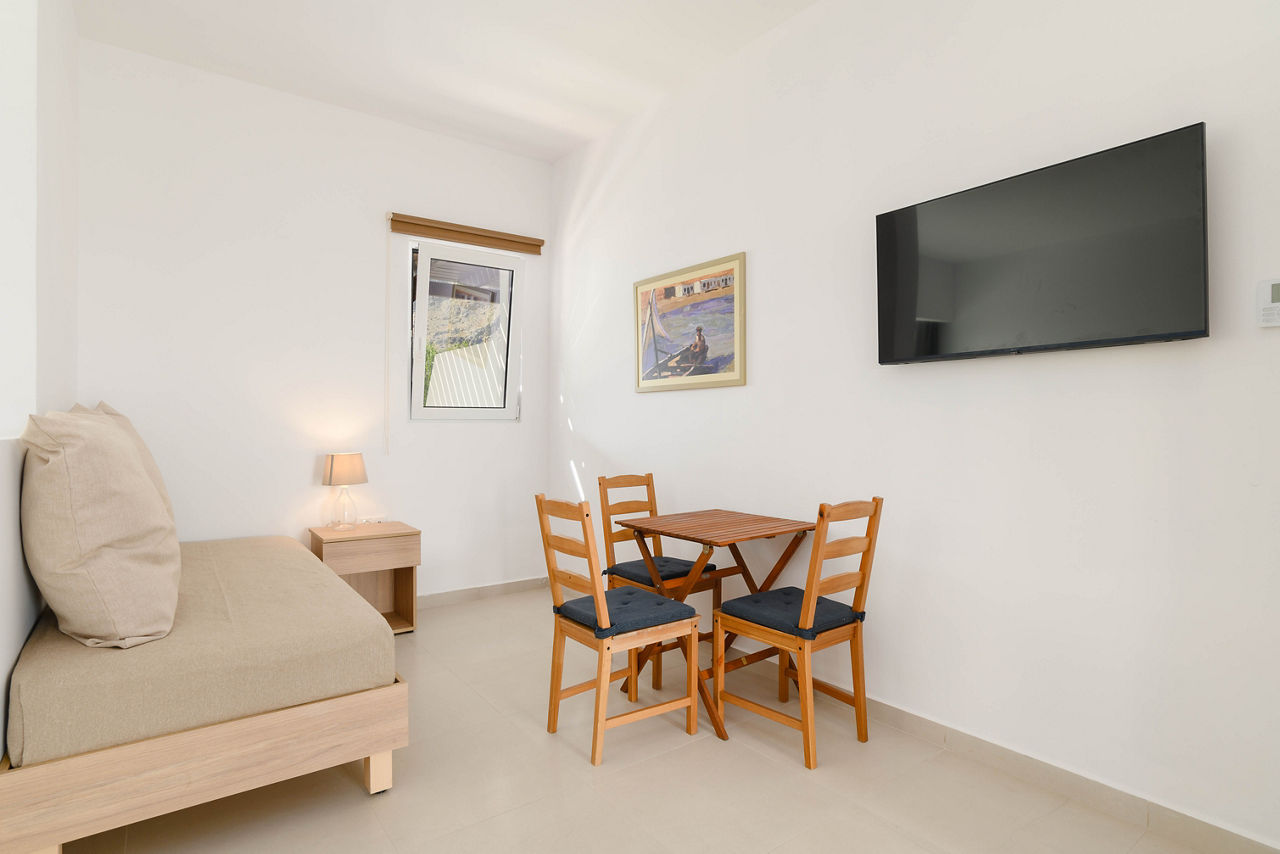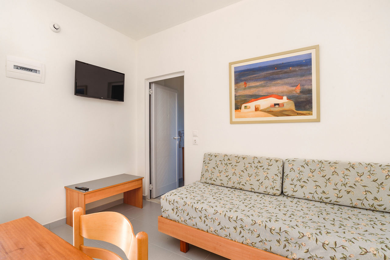 Studios sleep up to 3 adults or 2 adults and 1 child and have bathroom containing a bath with shower attachment, hairdryer, air conditioning*, television, double cooking rings, fridge freezer, kettle, microwave and balcony or terrace. One Bedroom apartments sleeping up to 4 adults, One Bedroom apartment in the New Block, Studios for Sole Use, Apartments for Sole Use are also available.