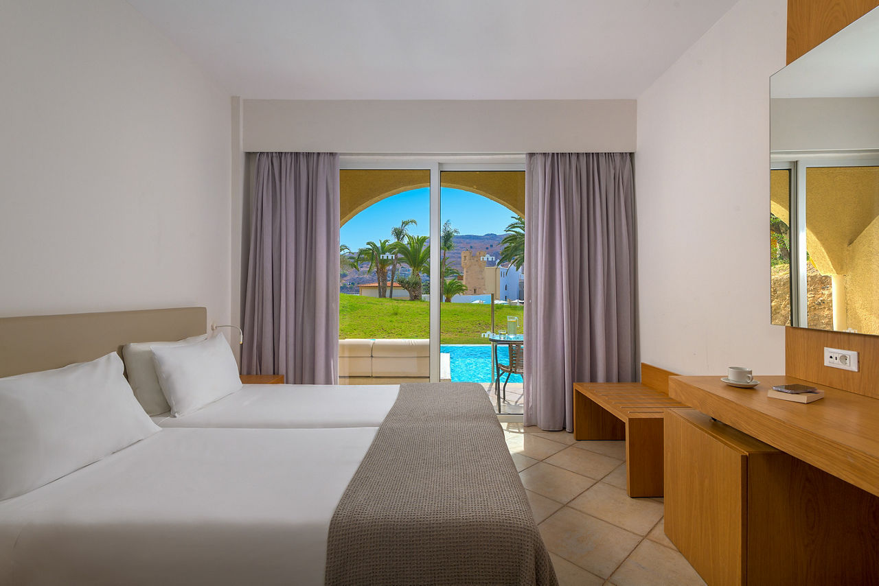 Double or twin room with Garden View sleeps up to 3 adults and have bathroom with bath with shower attachment, air conditioning, hairdryer, flat screen television, fridge and balcony or terrace. Room upgrade options and Sole Use rooms are also available.