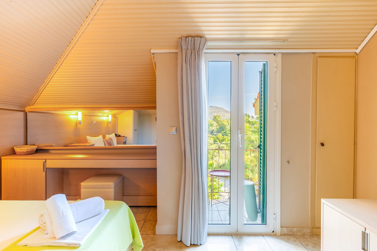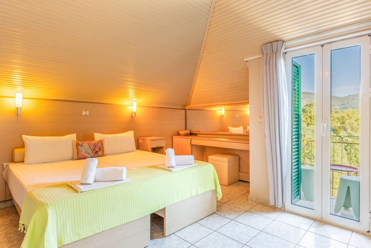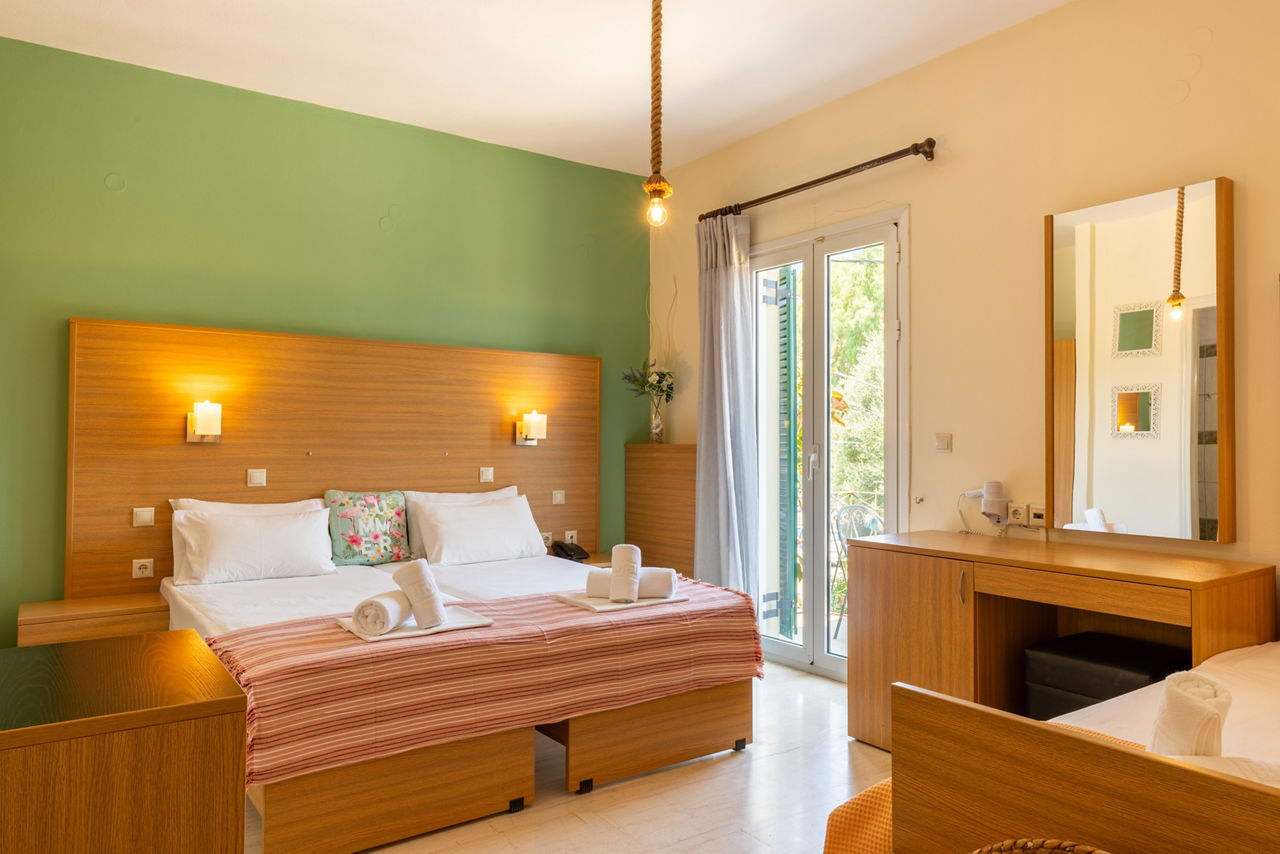Double and Twin rooms sleep up to 2 adults and have a bathroom with shower, air conditioning*, satellite TV, tea and coffee making facilities, free wired internet access and balcony or terrace. Triple rooms are also available.