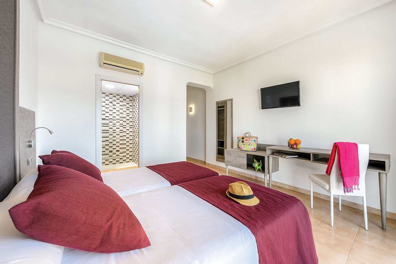 Twin rooms sleep up to 2 adults and have bathroom containing a bath with shower attachment, air conditioning, television and a balcony or terrace. Room upgrades and rooms for sole use are also available.