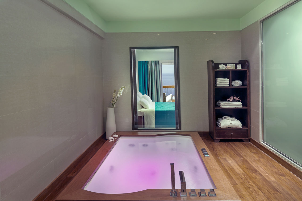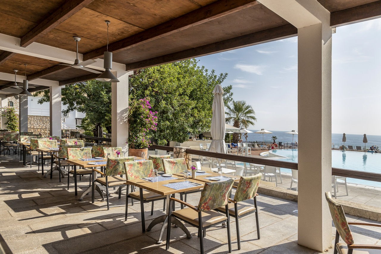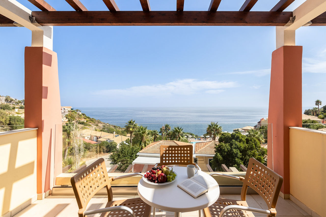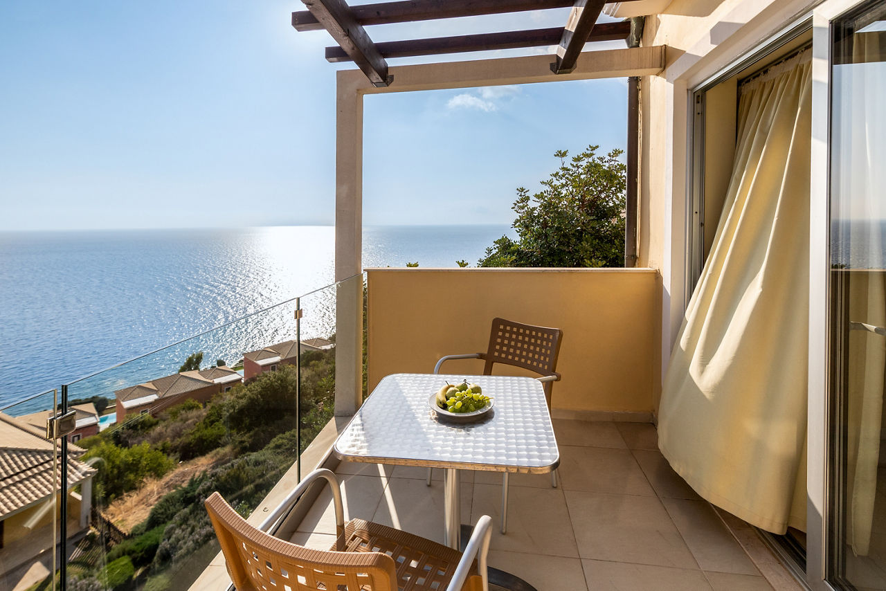 Standard Double or Twin rooms sleep up to 3 adults and have a full bathroom, air conditioning, satellite TV, Wi-Fi access, tea and coffee making facilities and balcony or terrace. Standard Double or Twin rooms with Sea View, Superior Double or Twin rooms, Superior Double or Twin rooms with Side Sea View and shared pool, Family rooms, Suites with Sea View, Suites with private pool, Two Bedroom Suites with Sea View and private pool and Standard Double or Twin rooms for Sole Use are also available.