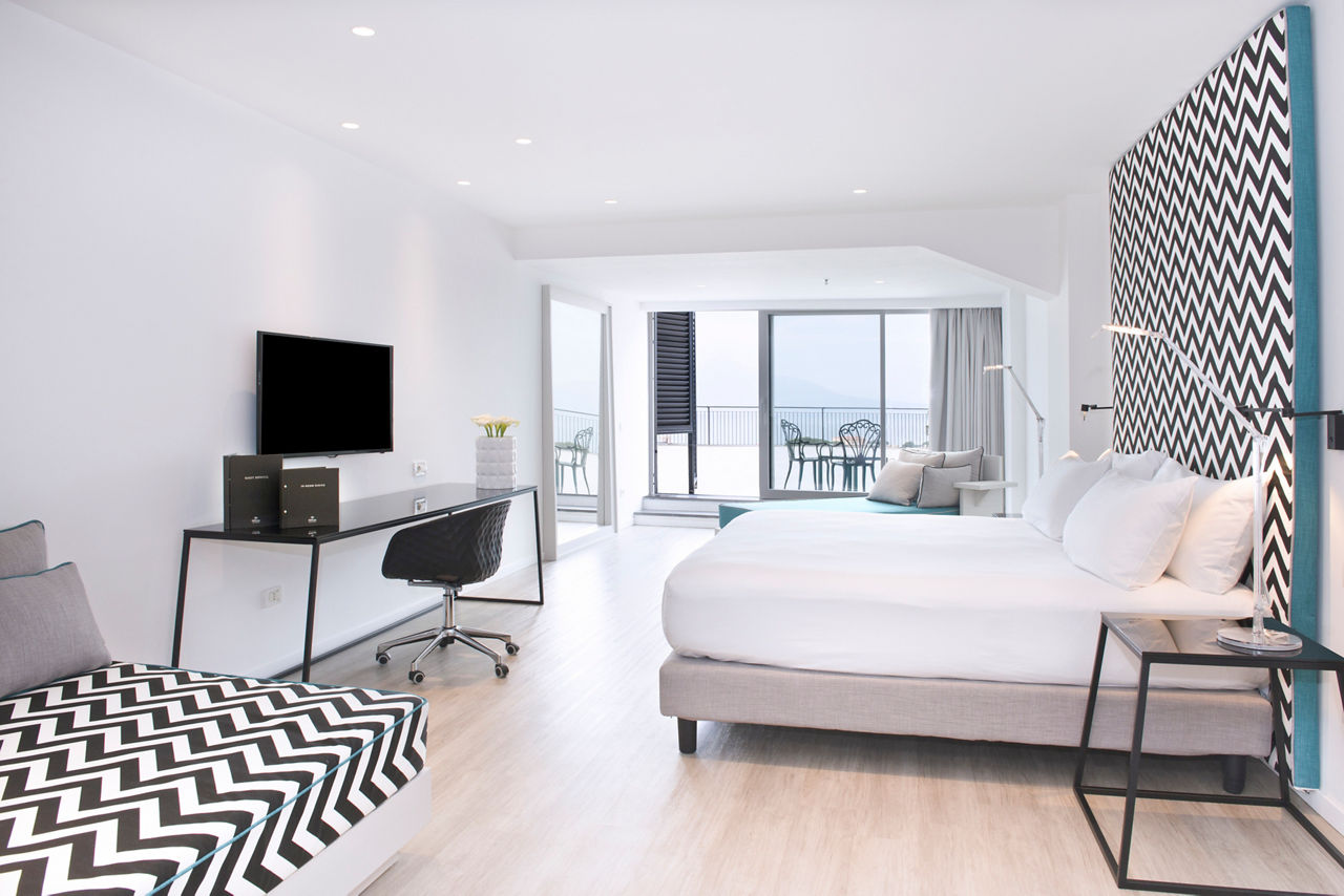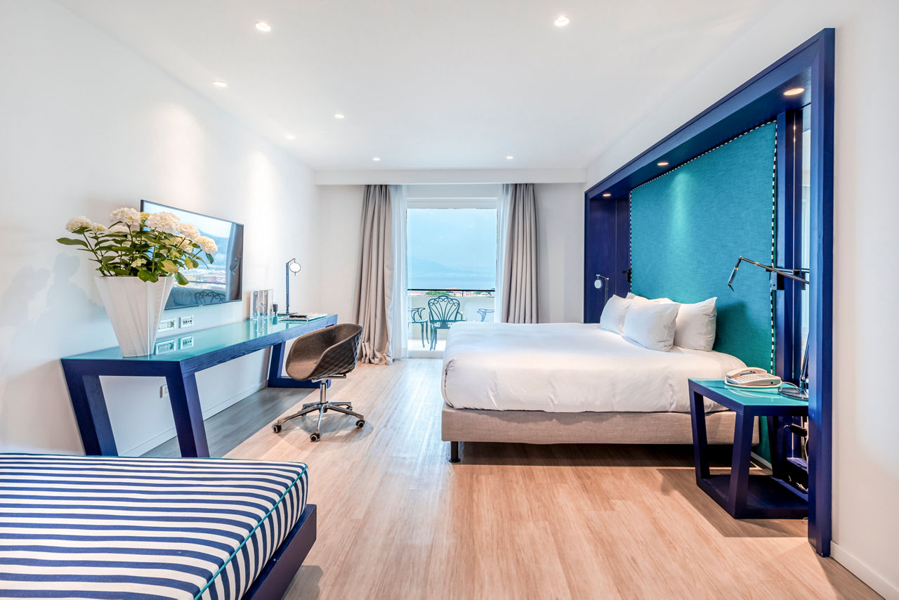 The stylish Hilton Sorrento Palace is surrounded by citrus gardens in a perfect spot with fantastic views overlooking the sea. The welcoming rooms are bright and modern featuring stunning mountain or sea views. Days can be filled lazing by the refreshing pools or exploring the historic Sorrento resort centre and evenings unwinding in the hotel?s cocktail bar. This hotel is the perfect option for a luxurious stay with the enchanting Sorrento on your doorstep.