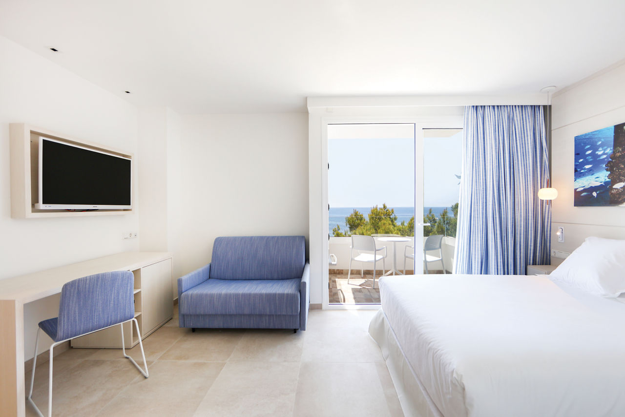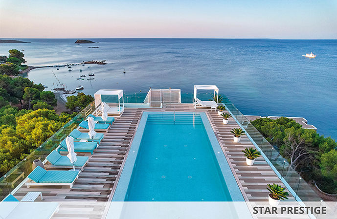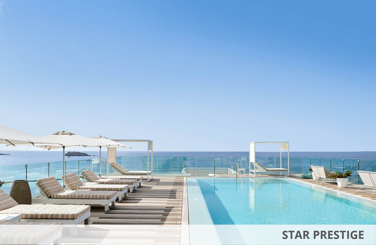 The adults-only Iberostar Selection Santa Eulalia Ibiza is furnished in a cool, boutique style and is just metres from a pine-fringed sandy beach. You can even enjoy stunning views of the turquoise-tinted bay from the comfort of your sun lounger. Rooms are spacious and bright making them ideal for relaxing and the Es Vedra Bar is the perfect place to watch those famous sunsets. Give your taste buds a treat in the buffet restaurant, which serves up a variety of fresh, Mediterranean and international flavours. Couples or friends looking for a laid-back base on the White Isle will absolutely love it here. For added luxury, look no further than a Star Prestige room, where you?ll get extra special touches like access to an exclusive lounge and pool and VIP service.