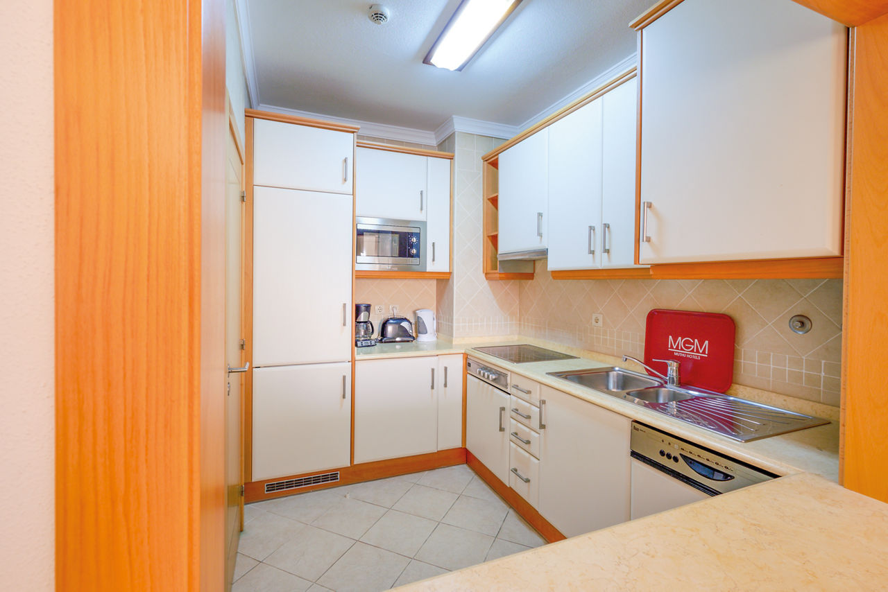 Deluxe One Bedroom apartments sleep up to 4 adults and have bathroom containing a bath with shower attachment, air conditioning, flat screen television, 4 cooking rings, dishwasher, fridge-freezer, microwave, oven, tea and coffee making facilities, toaster and washing machine. One Bedroom Junior suites are also available.
