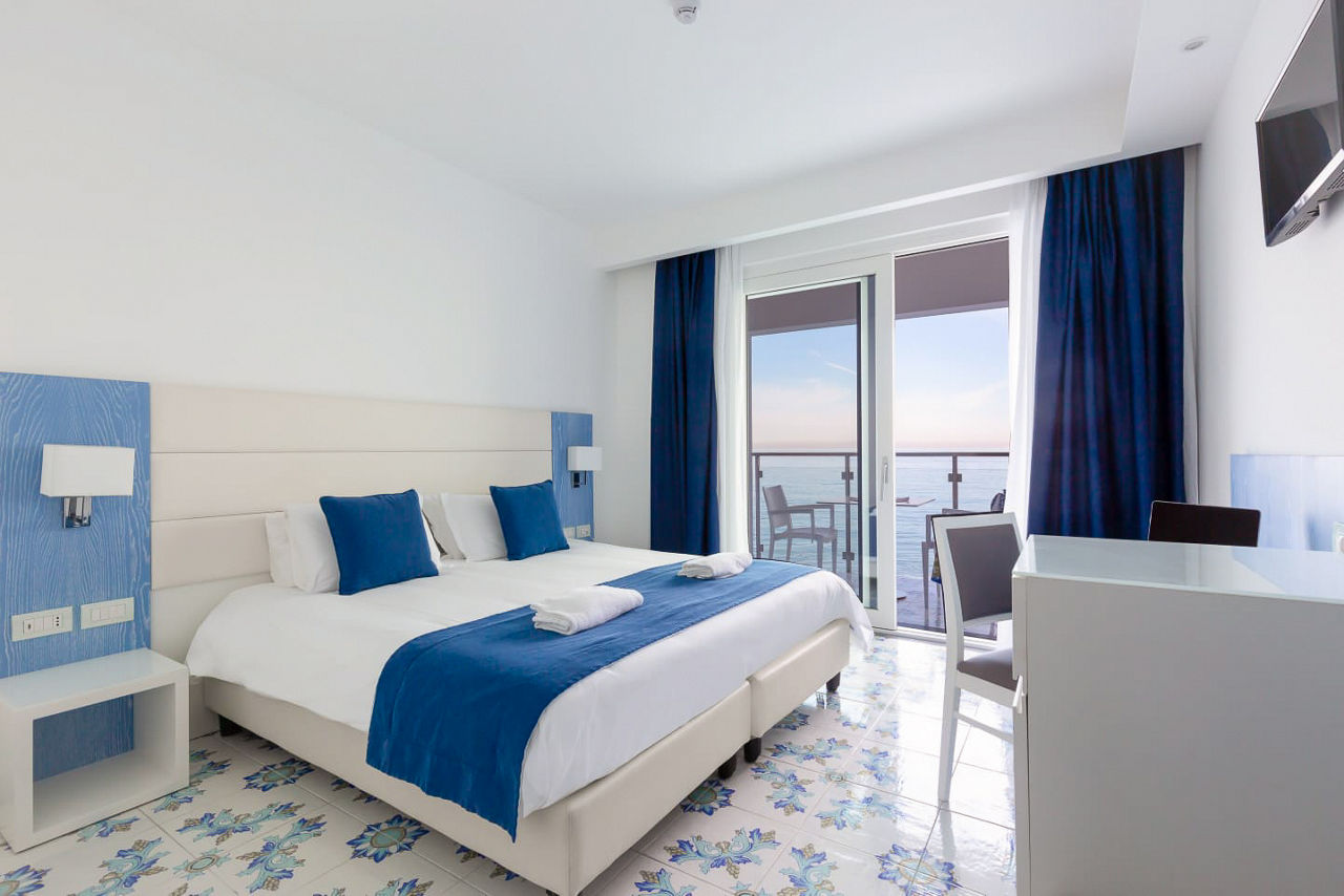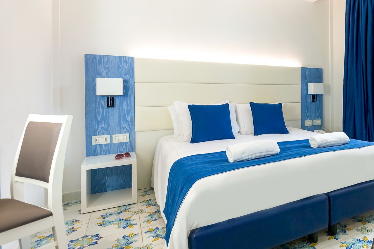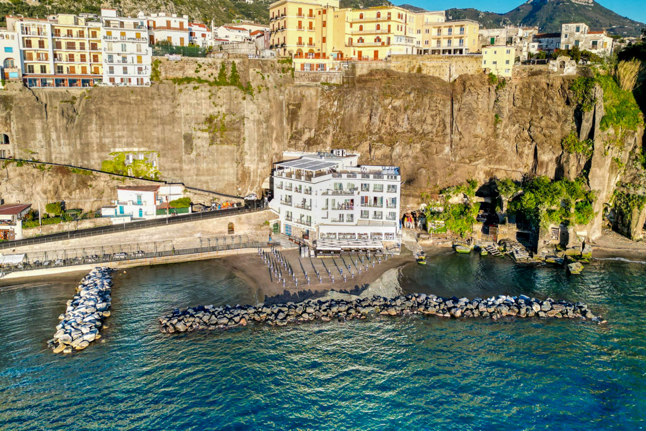 Perched peacefully on the beach, Hotel Giosue A Mare stands out for its splendid panorama, fresh interiors and friendly atmosphere. The hotel's restaurant serves up seafood specialities while the rooftop bar hosts a carefully curated cocktail selection, plus the perfect sunset. Explore the laidback seafront town of Meta di Sorrento or take the hotels complimentary shuttle to Meta train station to explore further afield.