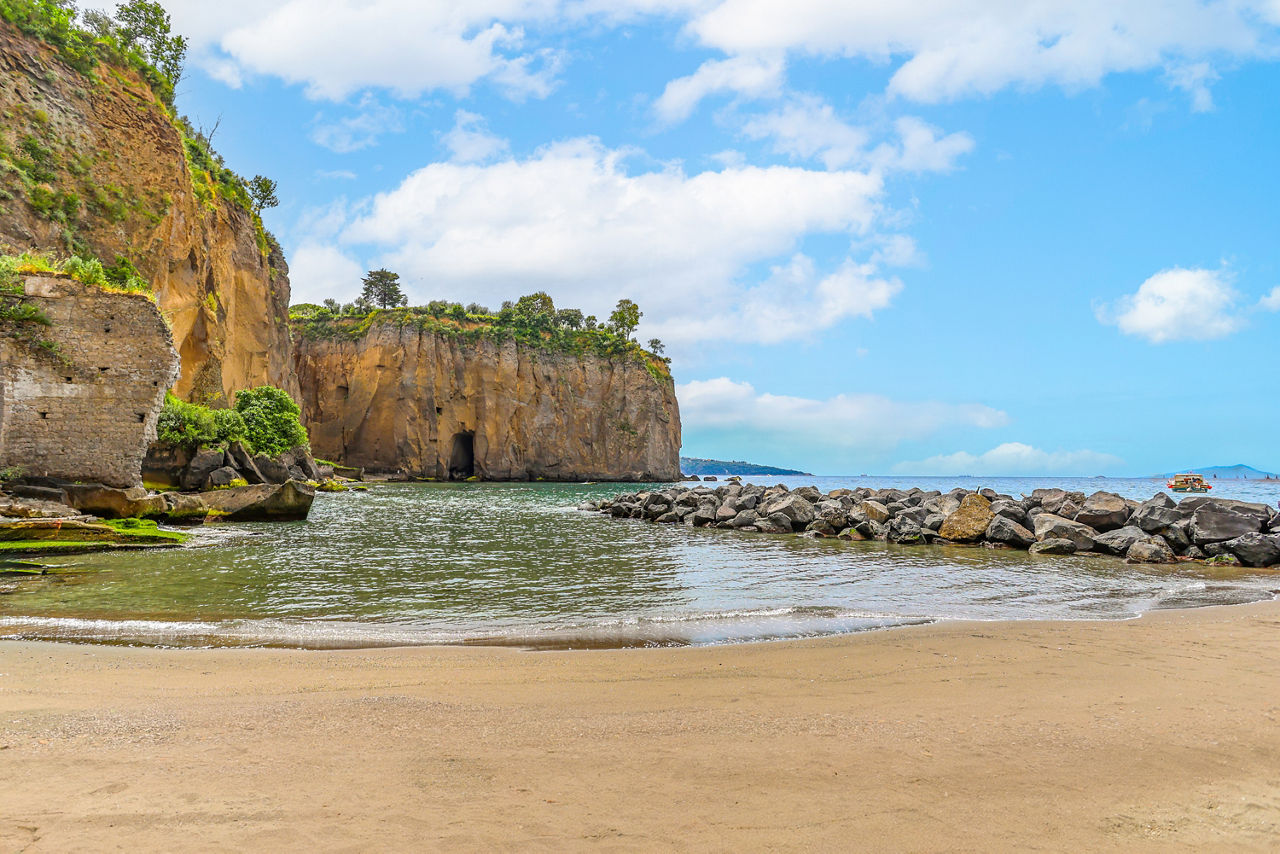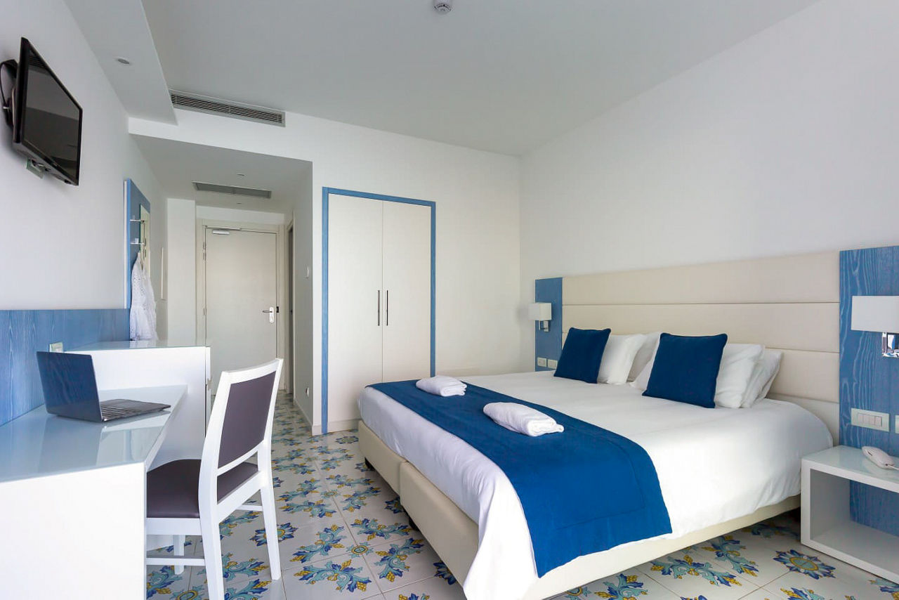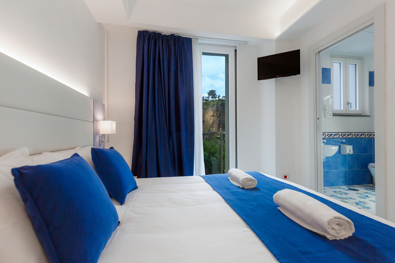 Perched peacefully on the beach, Hotel Giosue A Mare stands out for its splendid panorama, fresh interiors and friendly atmosphere. The hotel's restaurant serves up seafood specialities while the rooftop bar hosts a carefully curated cocktail selection, plus the perfect sunset. Explore the laidback seafront town of Meta di Sorrento or take the hotels complimentary shuttle to Meta train station to explore further afield.