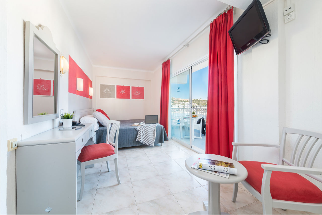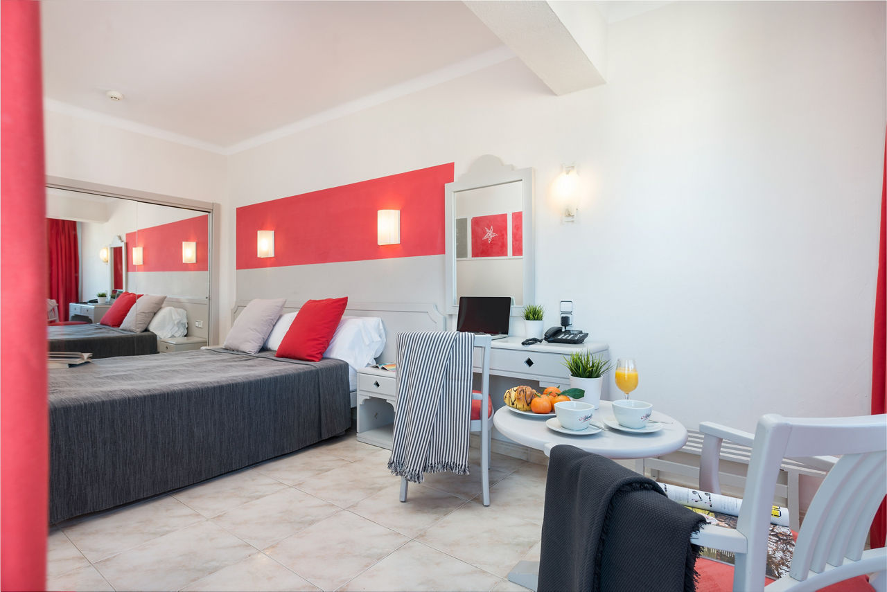 Double rooms sleep up to 2 adults and 1 child and have bath with shower attachment, air conditioning, satellite TV and balcony or terrace. Sole Use rooms and Double Sea View rooms are also available.