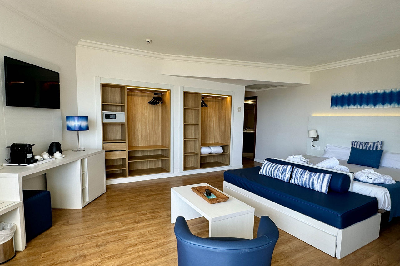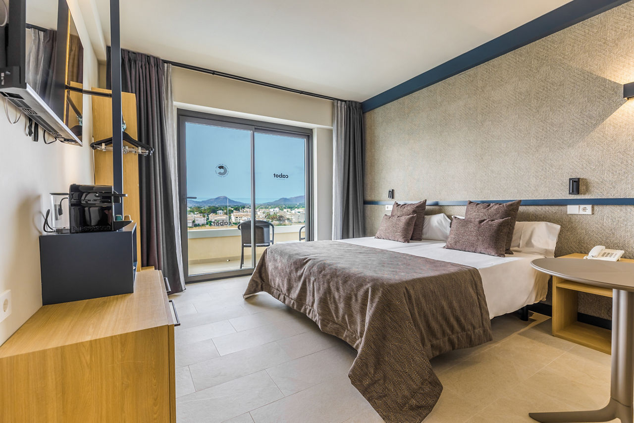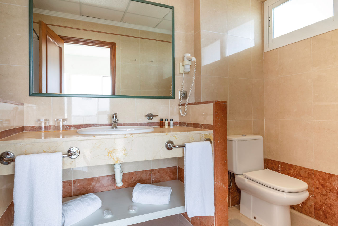 Double rooms sleep up to 2 adults and a child. All rooms have a full bathroom, air-conditioning, hairdryer, satellite TV and balcony or terrace. Double Sea Views, Single rooms, Double for single use and Double sea view for single use are all available. For Families there are Double Connecting rooms made up of 2 pool view twins with a connecting door and also Family Rooms which are large rooms on ground floor which will accommodate up to 3 adults, 2 kids and a cot, these rooms do not have any balconies.