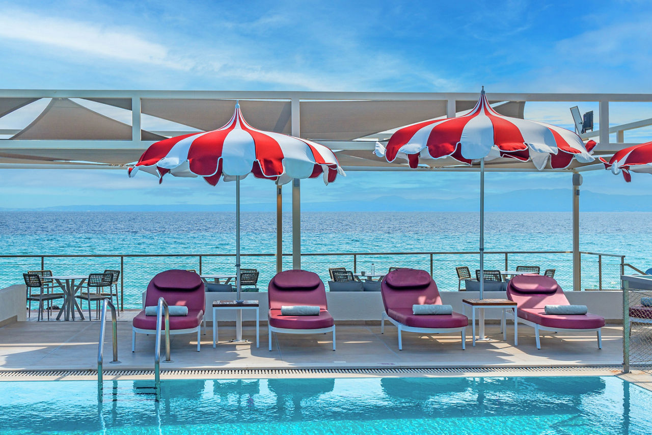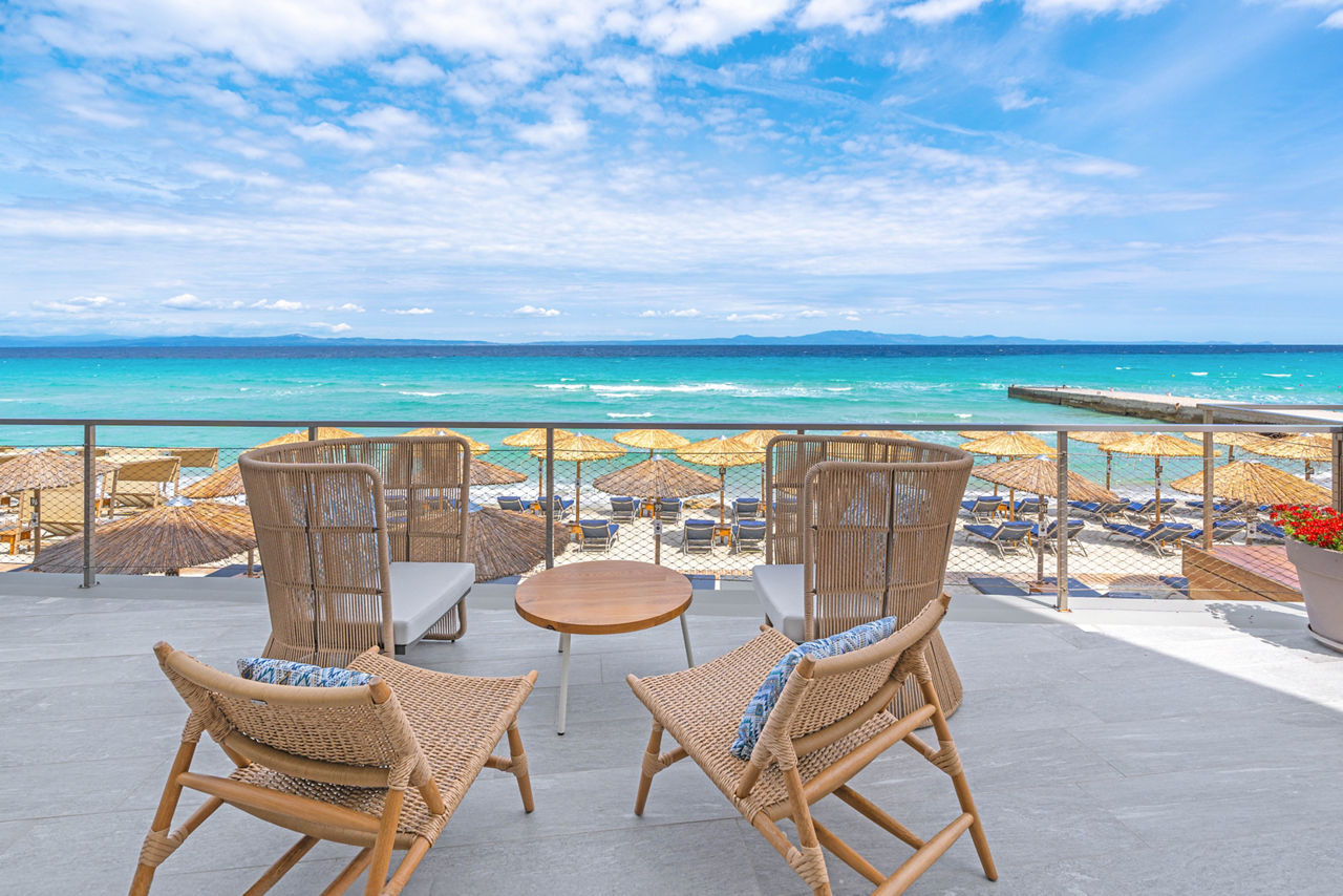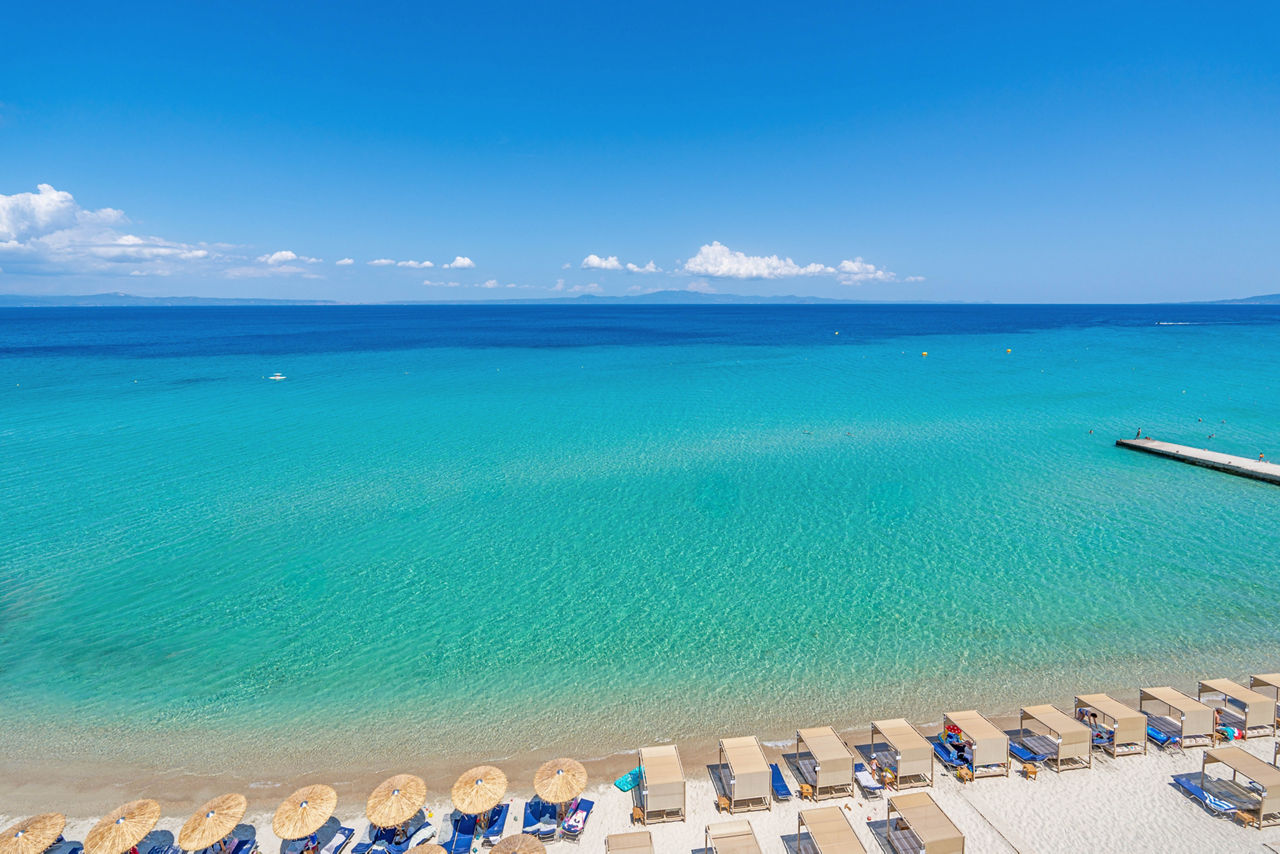 Enjoy the spectacular spot on this Blue Flag beach as you holiday in postcard-worthy surroundings. Contemporary, modern minimalism runs throughout the rooms and restaurants, while the hotel?s most inviting feature has to be the glistening outdoor pool. Who?s for a dip? Pull up a sunlounger if you?d prefer to stay dry. The range of board options makes dining among the international, Greek and Italian options a real treat too. While families relish the children?s playground, R