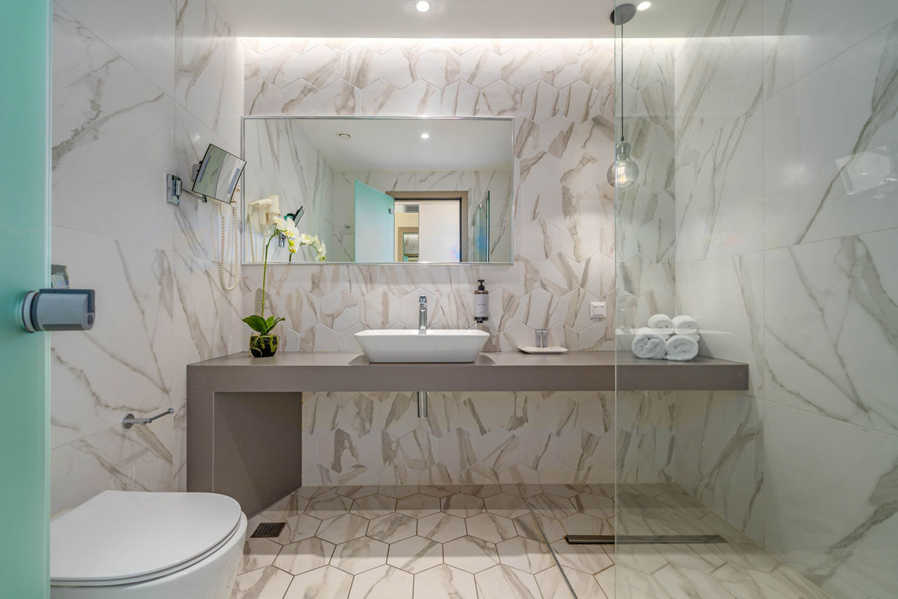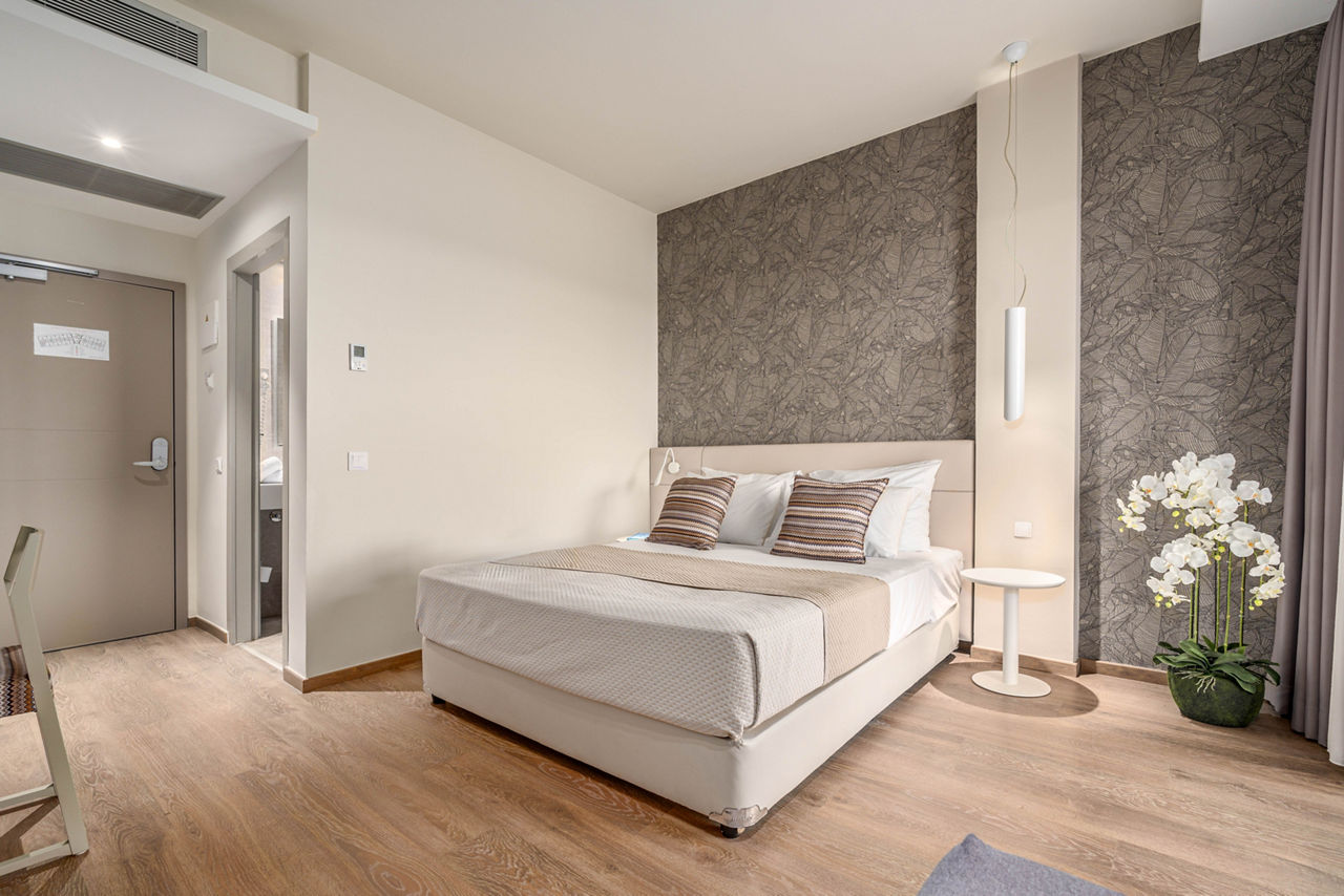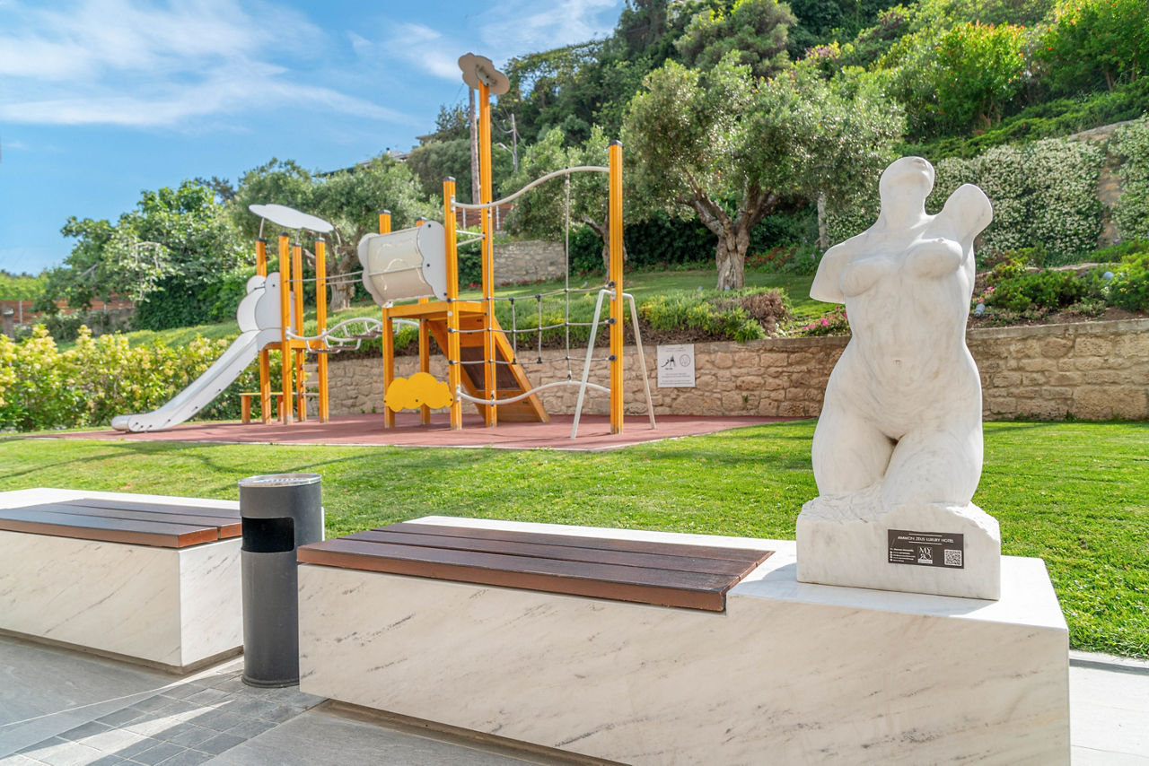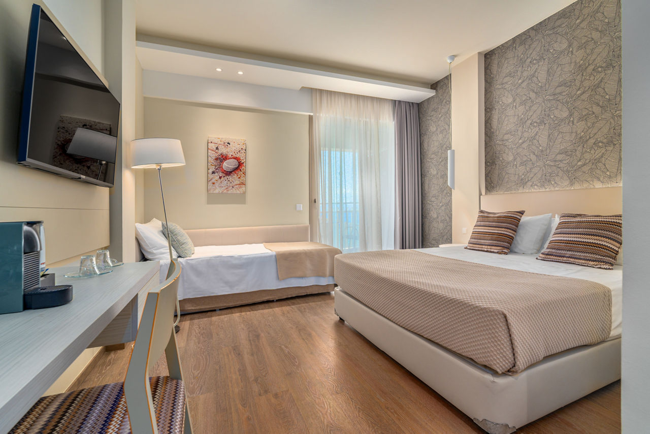 Enjoy the spectacular spot on this Blue Flag beach as you holiday in postcard-worthy surroundings. Contemporary, modern minimalism runs throughout the rooms and restaurants, while the hotel?s most inviting feature has to be the glistening outdoor pool. Who?s for a dip? Pull up a sunlounger if you?d prefer to stay dry. The range of board options makes dining among the international, Greek and Italian options a real treat too. While families relish the children?s playground, R