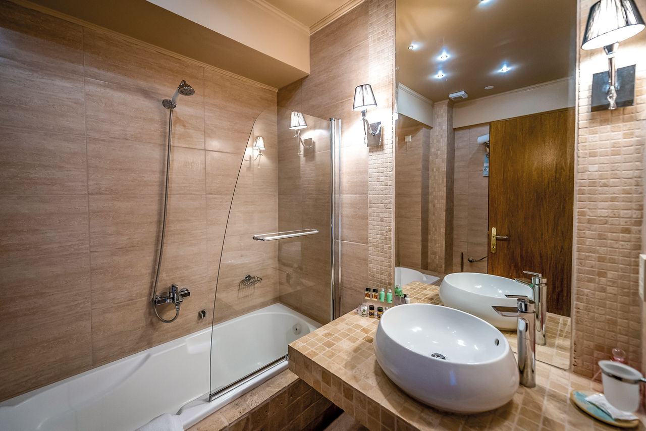 Double rooms sleep 2 adults and have bathroom containing bath or shower, air conditioning, television, fridge and balcony or terrace.