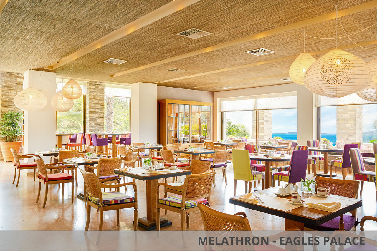 Melathron buffet restaurant. Armyra á la carte restaurant. Washi á la carte restaurant. Eagles snack bar. Ammos beach bar. Armyra pool bar.Entertainment