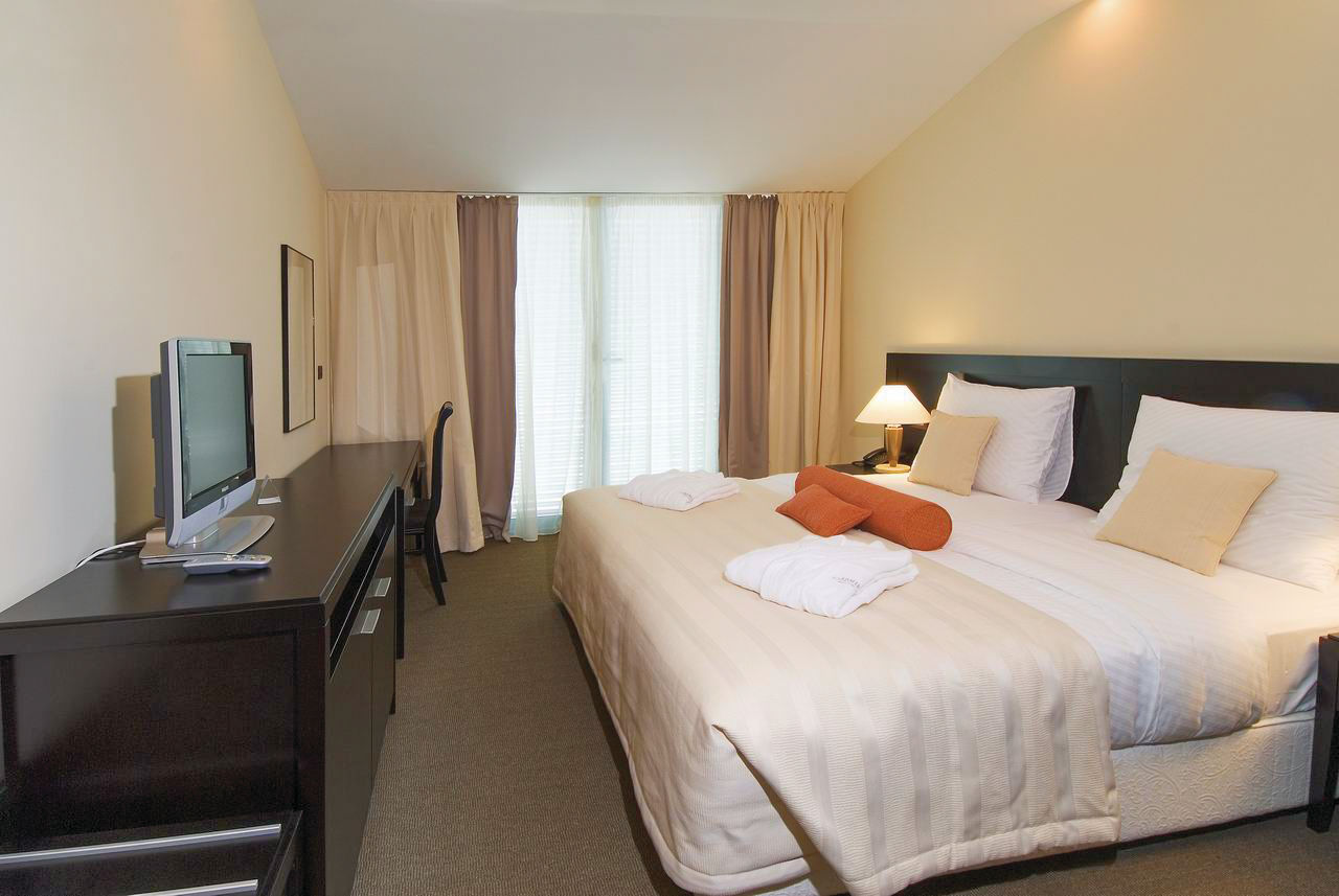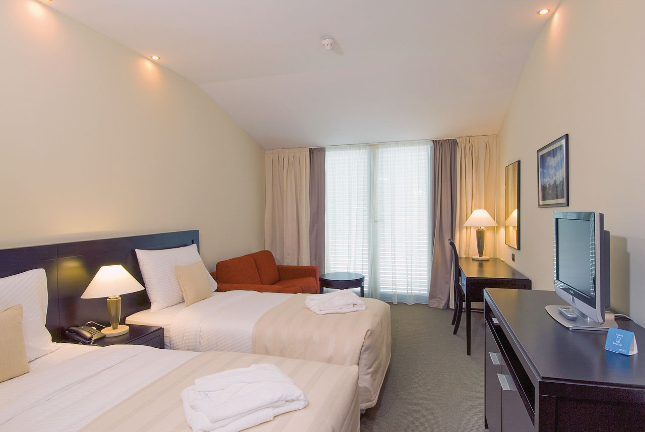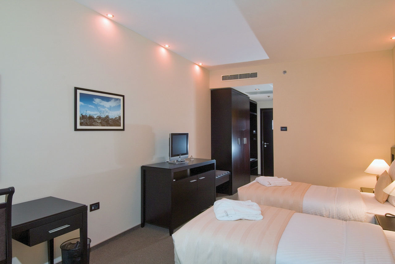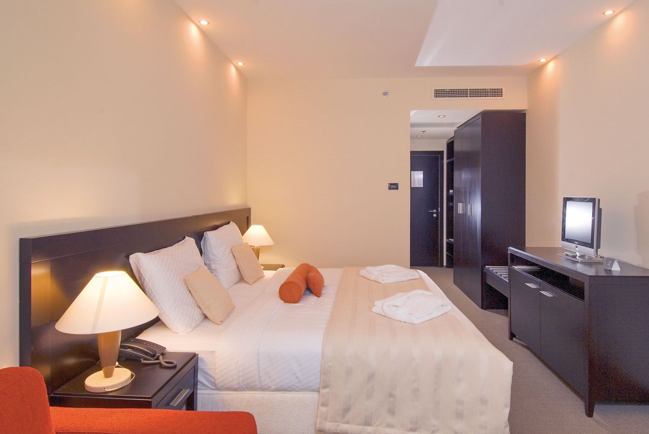 Standard Double and Twin rooms with Mountain View sleep up to 3 adults or 2 adults and 1 child and have a full bathroom, hairdryer, air conditioning, satellite TV, mini bar and Internet connection*. Standard Double and Twin rooms with Side Sea View are also available.