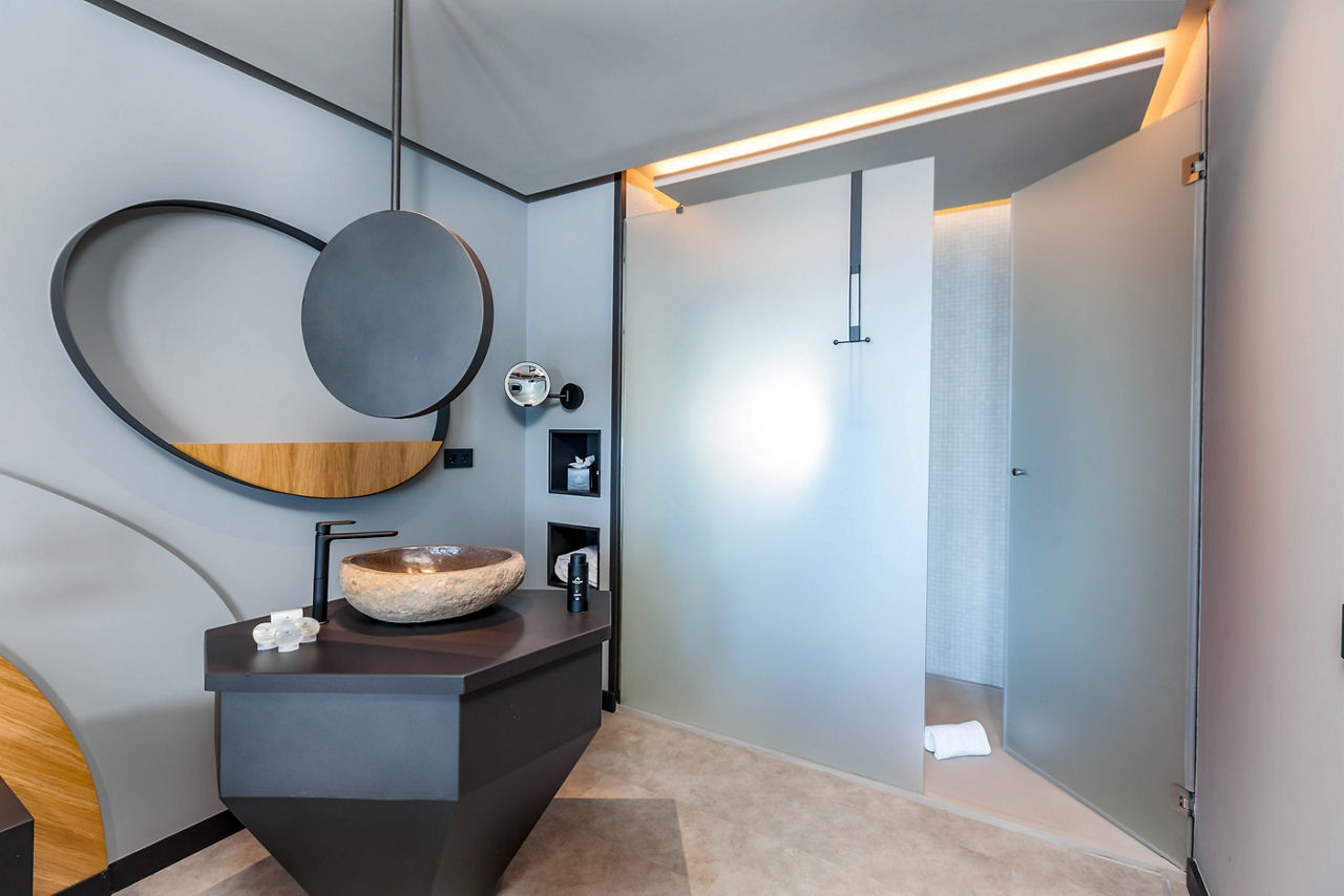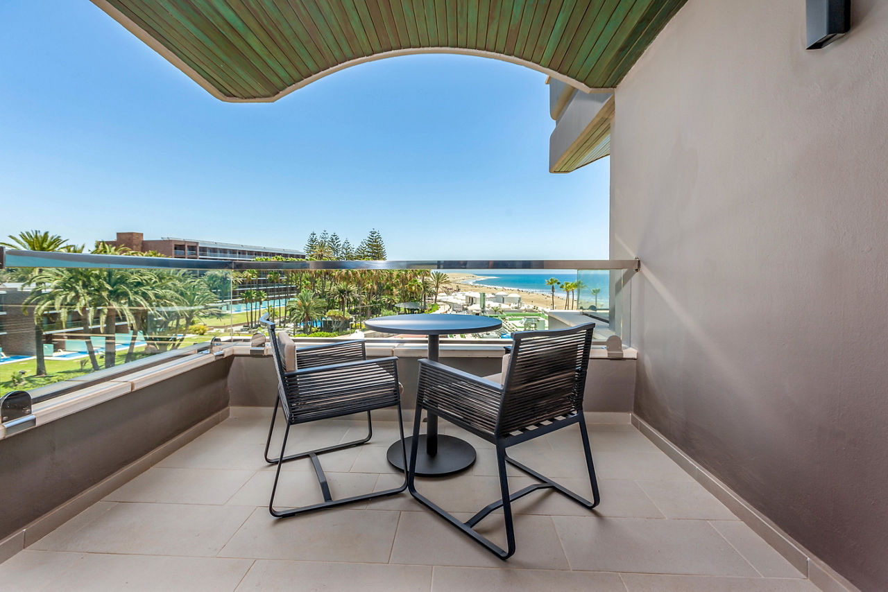 Double rooms sleep up to 3 adults and have bathroom with shower and hairdryer, air conditioning, ceiling fan, satellite TV, mini-fridge and balcony or terrace. Side sea view, Superior sea view, Junior suites with sea view and Double rooms for sole use are also available.