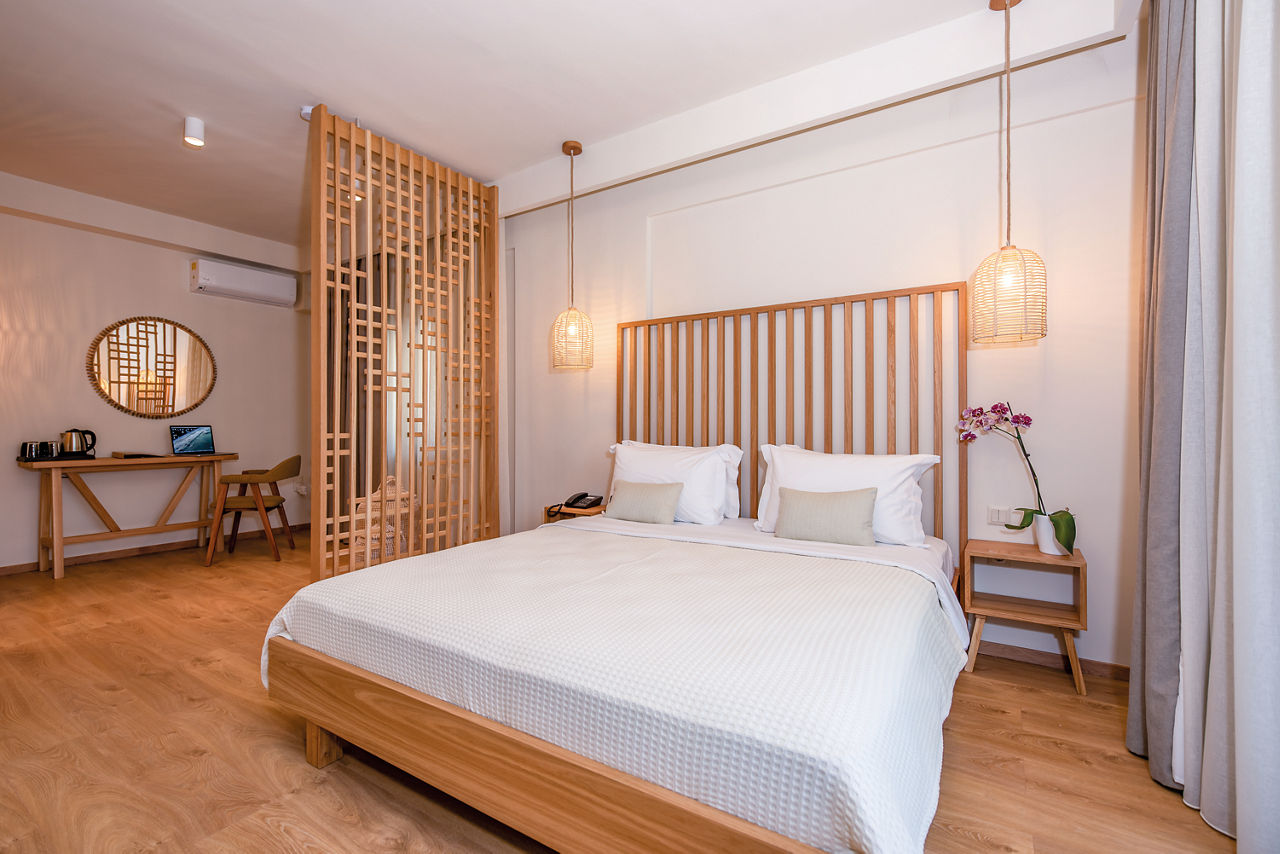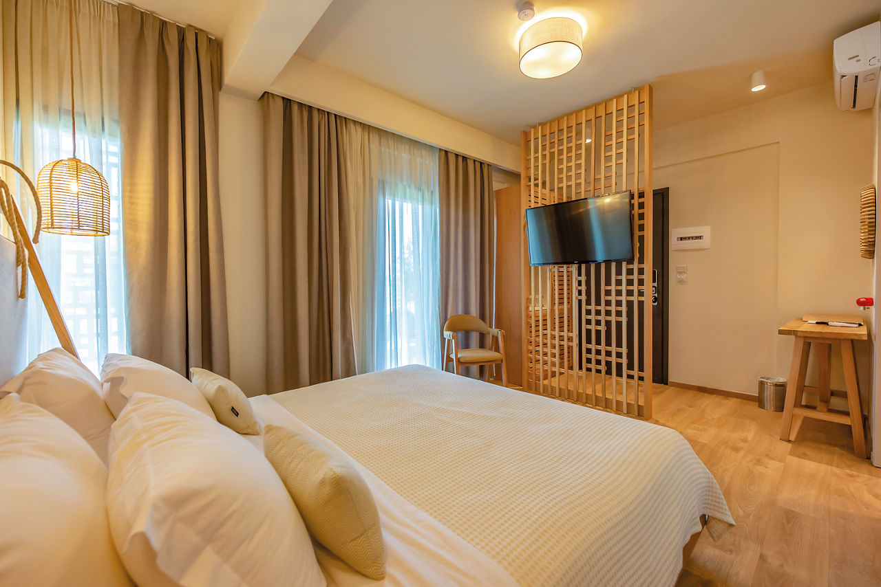 Elies 33 is a tranquil holiday retreat set on the Caldera of Afytos Village, overlooking the magnificent views of the turquoise sea and stunning pine trees. Boasting a contemporary and bohemian style, the relaxed ambience will definitely create a chilled out vibe for you to relax by the poolside or experience the beautiful beach which is only moments away. Specifically catered to the adult only market, it is great for those looking to escape their everyday day life and enjoy a peaceful getaway away from the hustle and bustle.