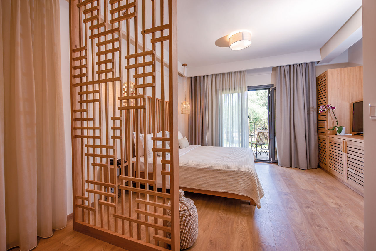 Standard rooms with Garden View sleep up to 2 adults and have bathroom containing a shower, air conditioning*, hairdryer, bathrobe and slippers, flat screen television, DVD player, tea and coffee making facilities and terrace. Room upgrade options are also available.