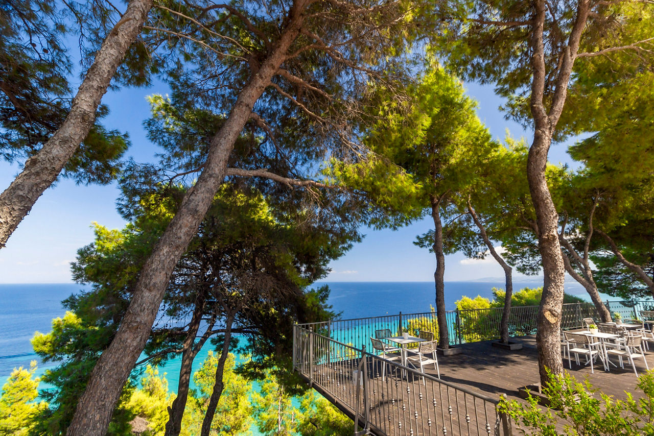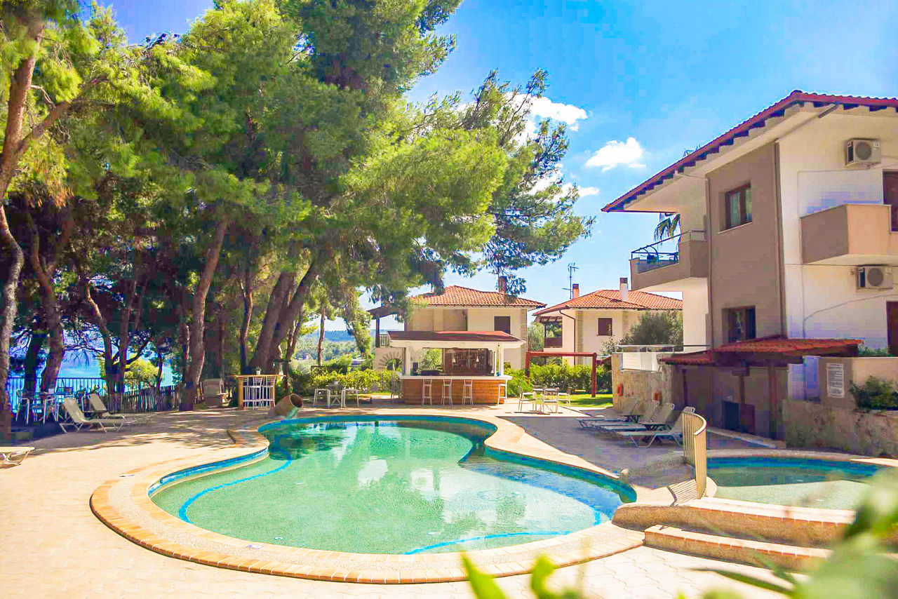 A quaint family-run property of just twenty rooms, the Evripidis Hotel is set in a quiet location between Afitos and Kalithea. Perched high on a hill, there are stunning sea views to be savored from the peaceful pool area. Rooms are simply furnished and the hotel also serves up breakfast on the terrace which often includes homemade specialties too. For those seeking to unwind, Evripidis Hotel is a perfect choice.