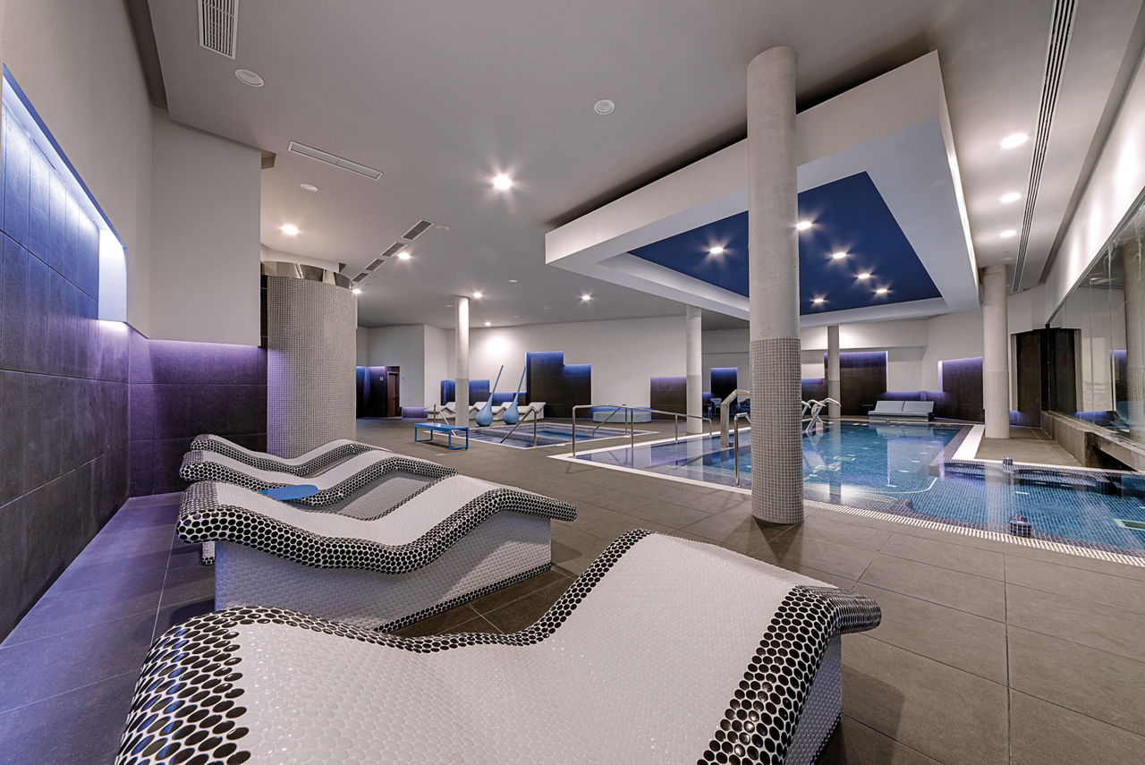 Aerobic, basketball, beach volleyball, darts, football, paddle, rock climbing wall, table tennis, tennis, water aerobics and water polo. Outdoor fitness area. Gym. Spa with indoor pool with jets, whirlpool, sauna, steam bath and massage treatments*. Children?s club (4-12 years).Swimming Pools