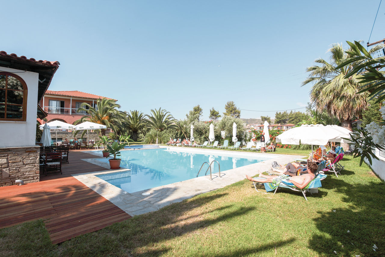 Nestled amongst gardens and surrounded by forest, the Hanioti Village Resort