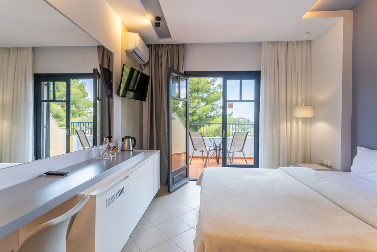Economy Double Room sleep up to 2 adults and 1 child and have bathroom containing a bath with shower attachment, air conditioning*, hairdryer, television and balcony or terrace. Room upgrade options are also available.