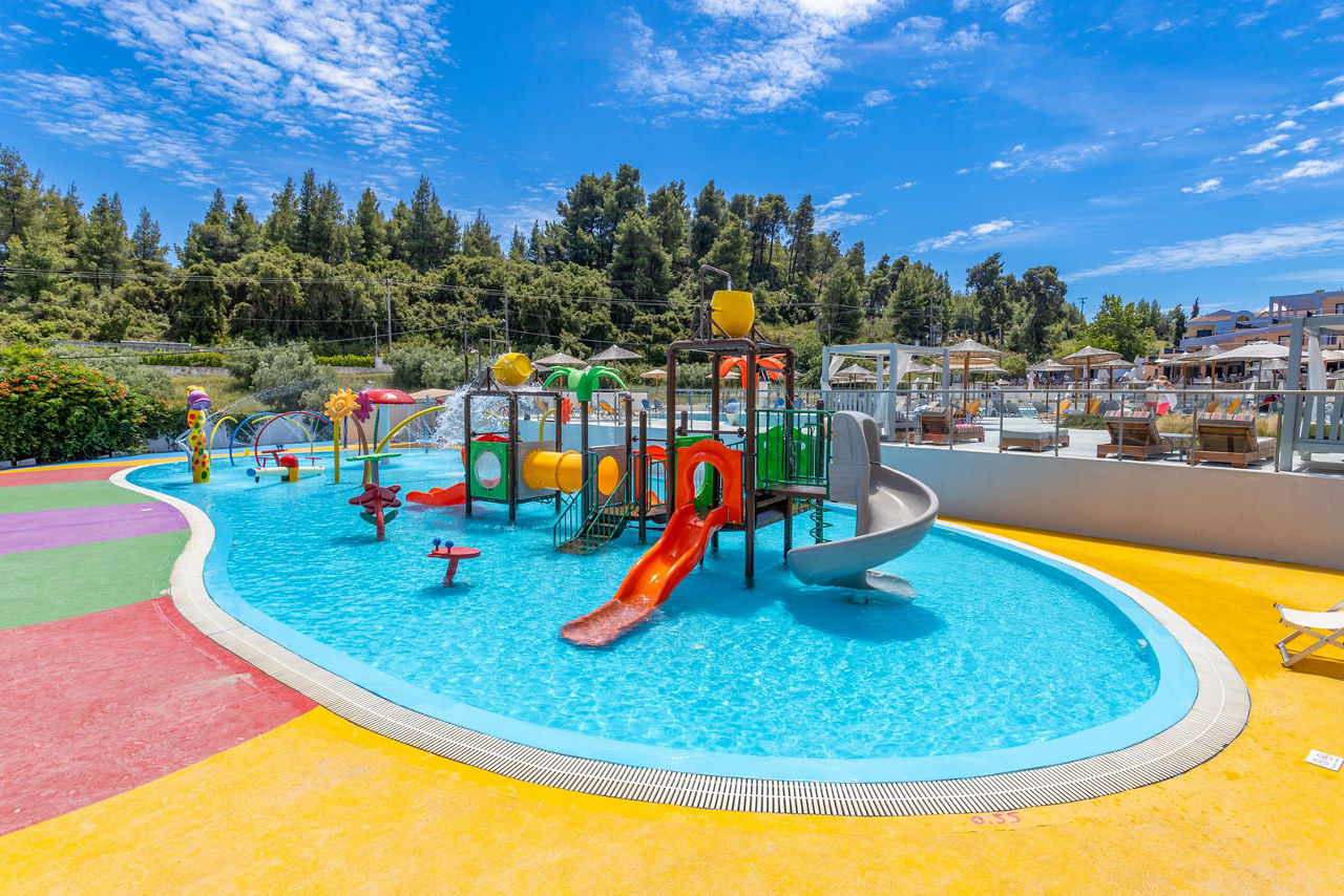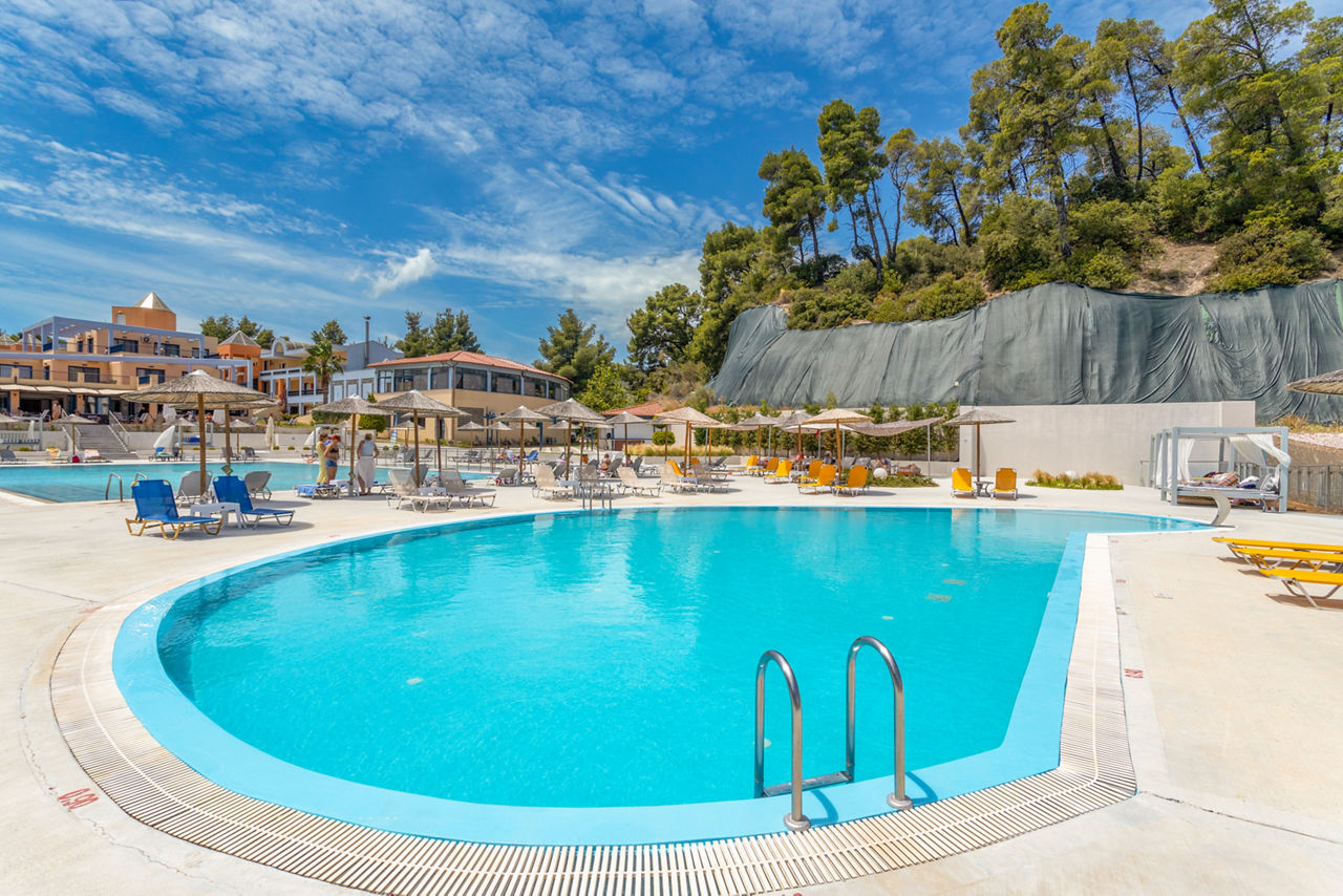 Set on a hillside and surrounded by pine forest, the Atrium Hotel features bright, colourful buildings and a lively atmosphere, perfect for families. Guests can enjoy a fantastic splash park, ideal for fun-filled days in the sun, along with a pool terrace offering views of the Kassandra Gulf. A convenient shuttle bus makes it easy to reach both the beach and the bustling village of Pefkohori, with its great choice of tavernas, restaurants, and shops.