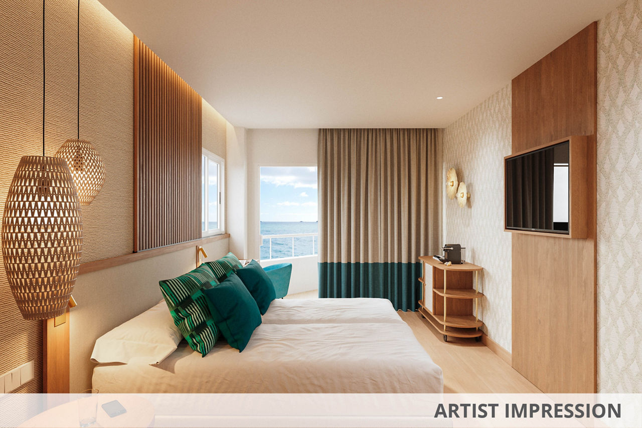 Twin rooms have a bathroom containing a bath with shower attachment, hairdryer, air conditioning, satellite TV and balcony or terrace.
