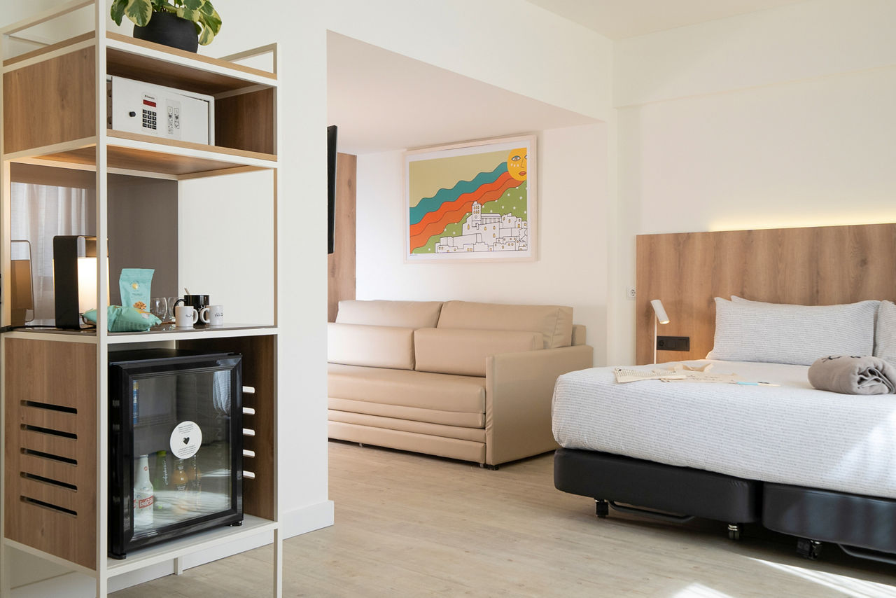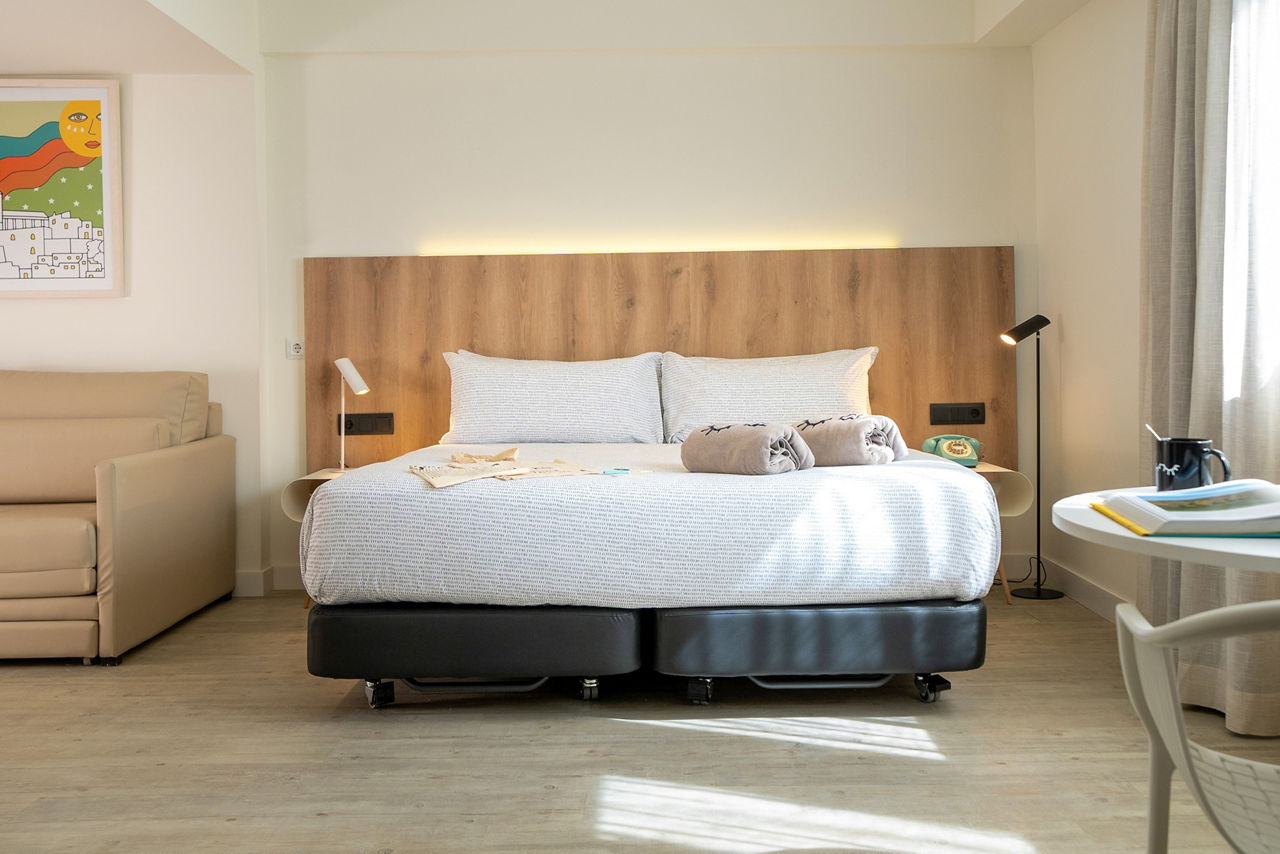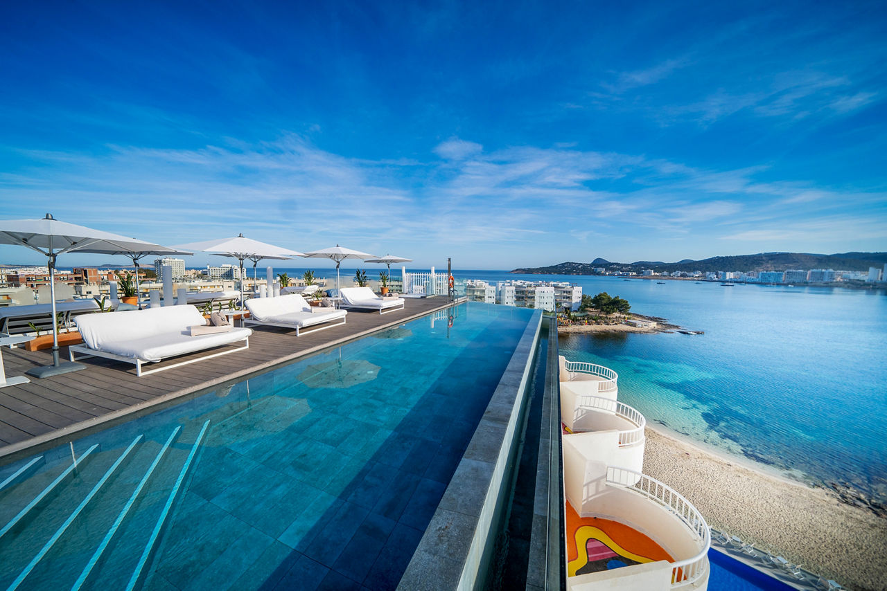 You had us at ?infinity pool?, Innside by Melia Ibiza. Make a beeline for Rooftop Nine where it?s all Bali bed lounging, cocktail sipping and sunset snapping with a side of live DJs and summer sounds. Then snooze in luxury thanks to the crisp white bedrooms. Feeling fancy? Have a peek at The Studios.