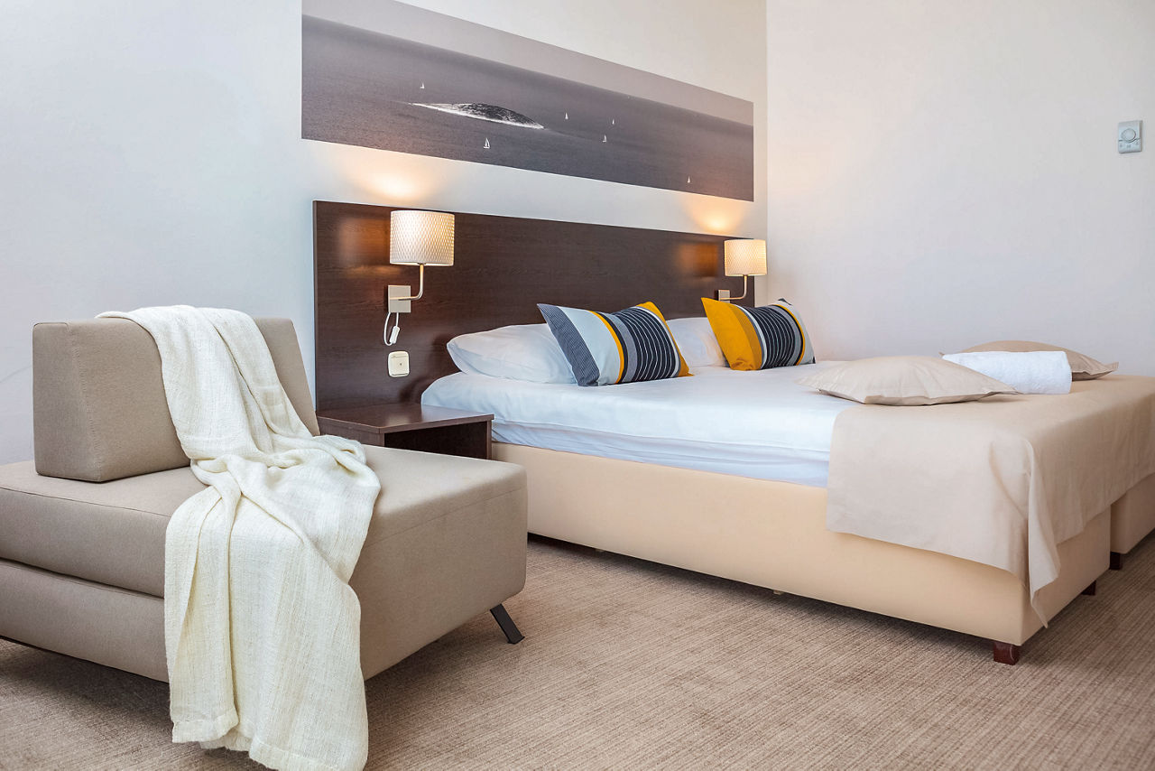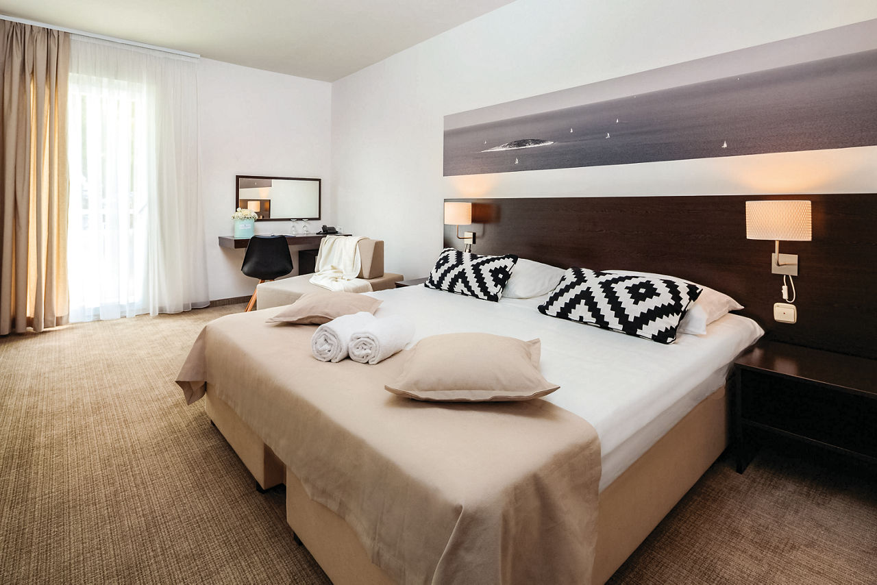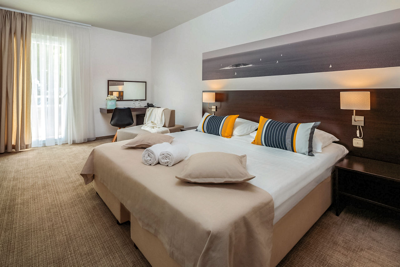 Double rooms with Sea View sleep up to 2 adults and have bathroom with bath or shower, air conditioning, hairdryer, flat screen television and balcony. Room upgrade options are also available.
