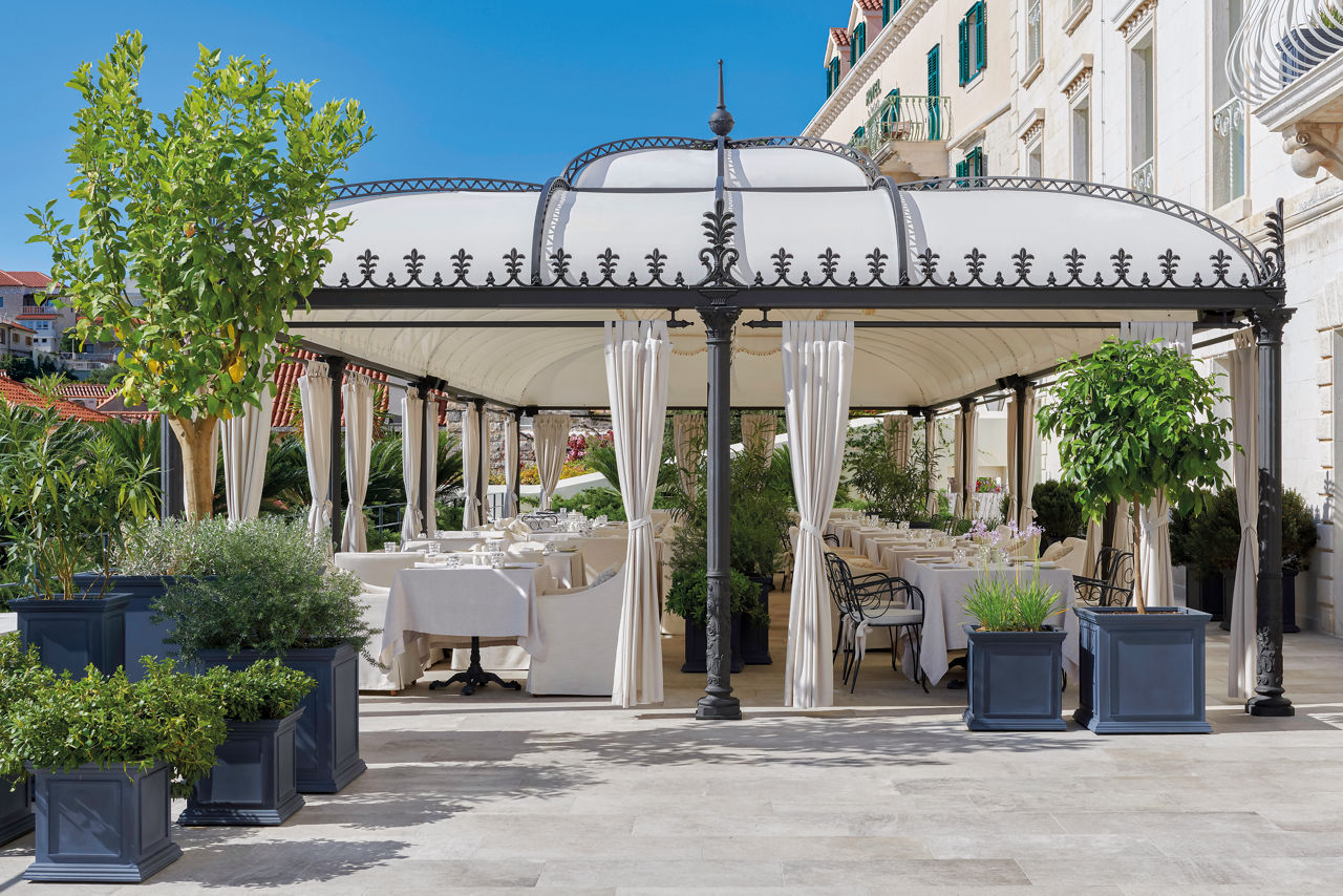 Palace Elisabeth Hvar epitomises regal luxury. As its name suggests, this elegant hotel is the former summer residence of Princess Elisabeth, the Austrian Empress. As you?d imagine, it certainly delivers the wow factor... Past the dominating chandelier in reception, you?ll find historical remnants, the spa and indoor pool. This member of the ?Leading Hotels of the World? group houses nods to the past, including portraits. There are 45 fascinating samples of Elisabeth?s dresses and framed jewellery across the rooms and suites. Retreats here are best done by relaxing on the sun terrace, enjoying drinks at the Bloody Mary station and dining on marvellous Mediterranean fare.