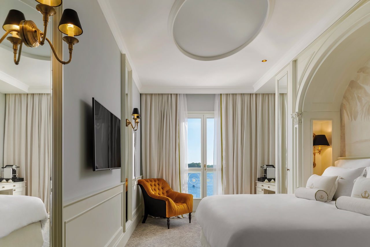 Premium rooms with Sea View sleep 2 adults and have bathroom containing a bath or shower, air conditioning, hairdryer, bathrobe and slippers, mini-bar*, safety deposit box, coffee making facilities and flat screen television. Sole Use rooms are also available.
